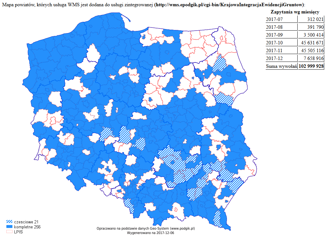 28 września 2017 roku Ministerstwo Cyfryzacji podjęło decyzję o włączeniu do Geoportalu (www.geoportal.gov.pl) trzech zintegrowanych usług WMS dotyczących: ewidencji gruntów i budynków, uzbrojenia terenu i miejscowych planów zagospodarowania przestrzennego. Po dwóch miesiącach funkcjonowania, usługi mają już prawie 200.000.000 wywołań, co świadczy o dużym zainteresowaniu udostępnioną informacją.
