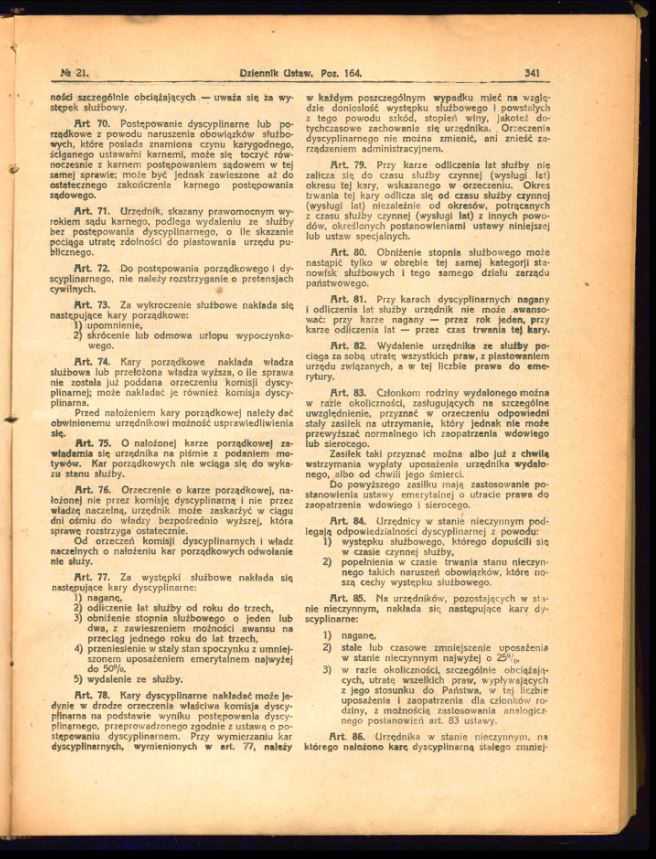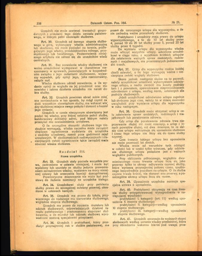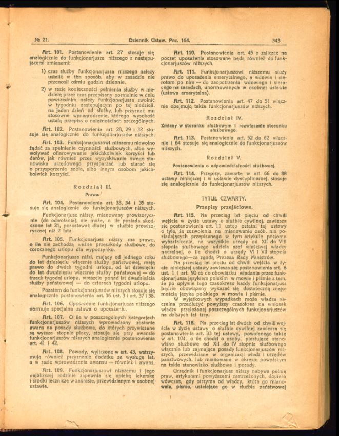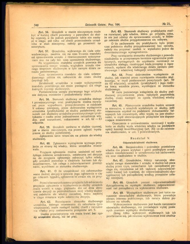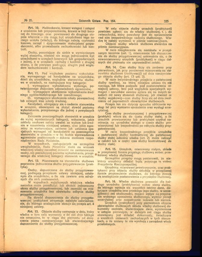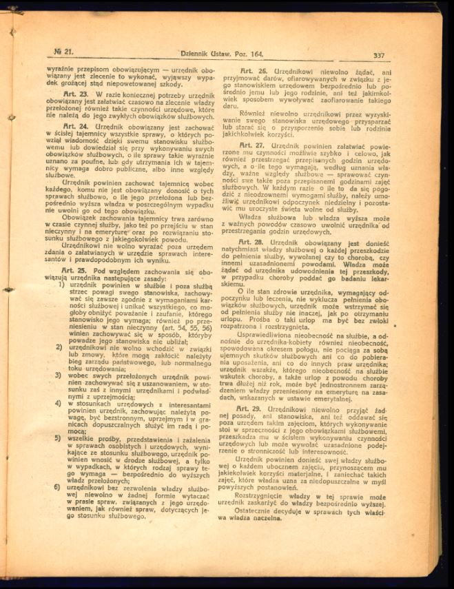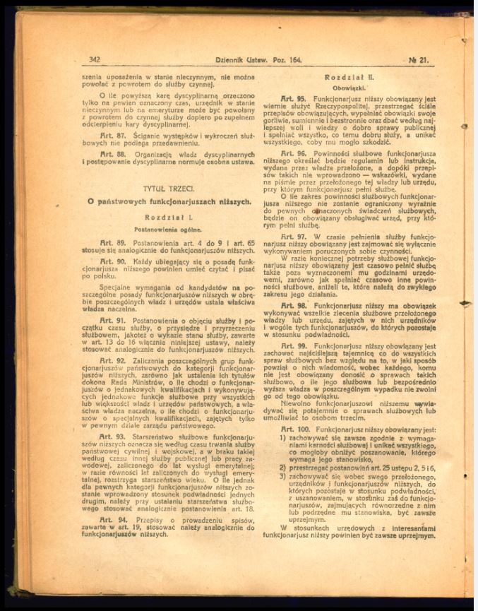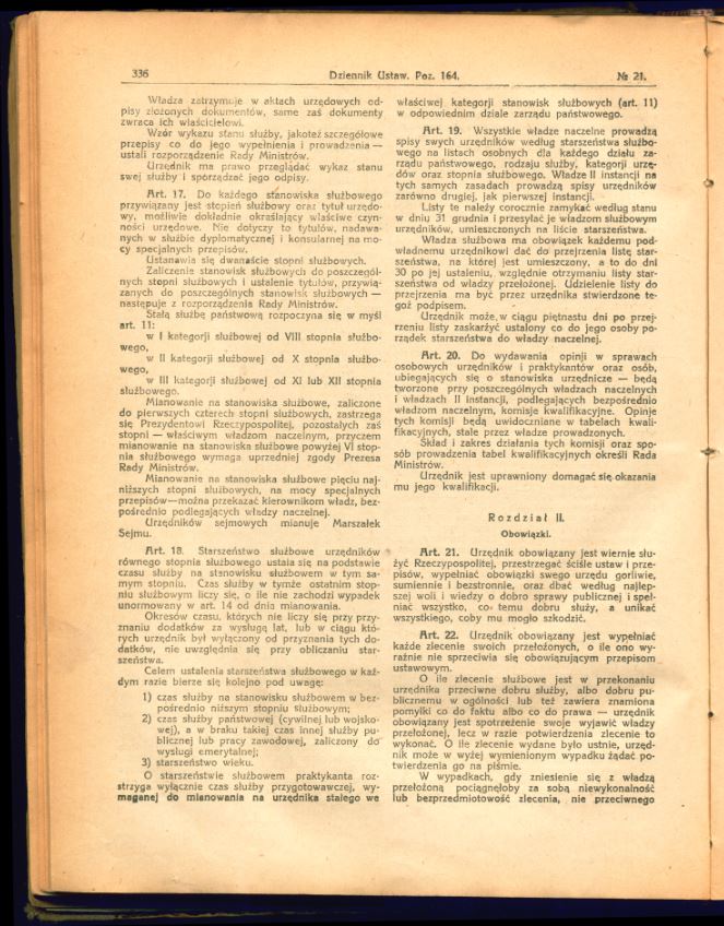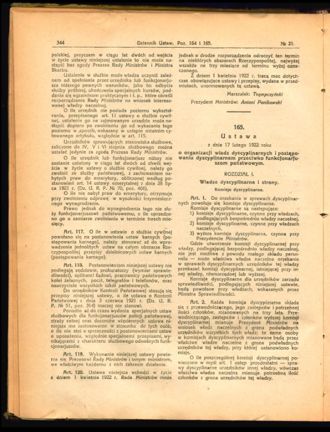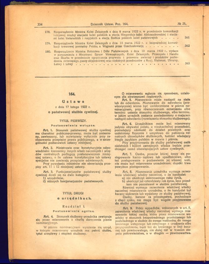 Tutaj znajdą Państwo zdjęcia uchwalonego i opublikowanego tekstu ustawy o państwowej służbie cywilnej z 17 lutego 1922 r. (Dz.U. z 1922 r., nr 21, poz. 164).