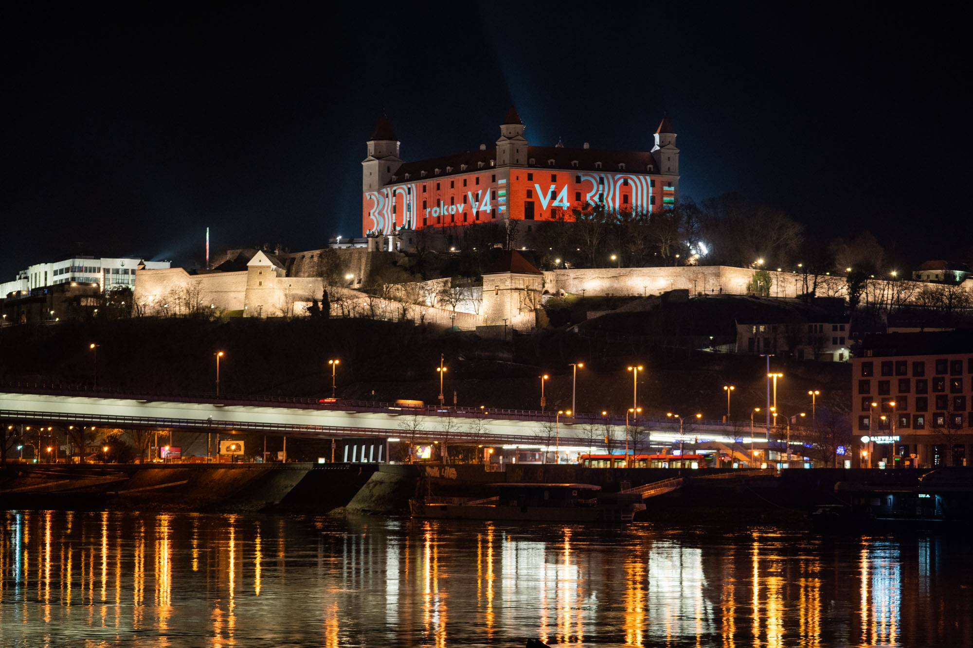 On 15 February 2021, the National Council of the Slovak Republic joined in celebrations marking the V4’s anniversary by putting nightly illuminations on Bratislava Castle, the capital’s symbol towering over the Danube.