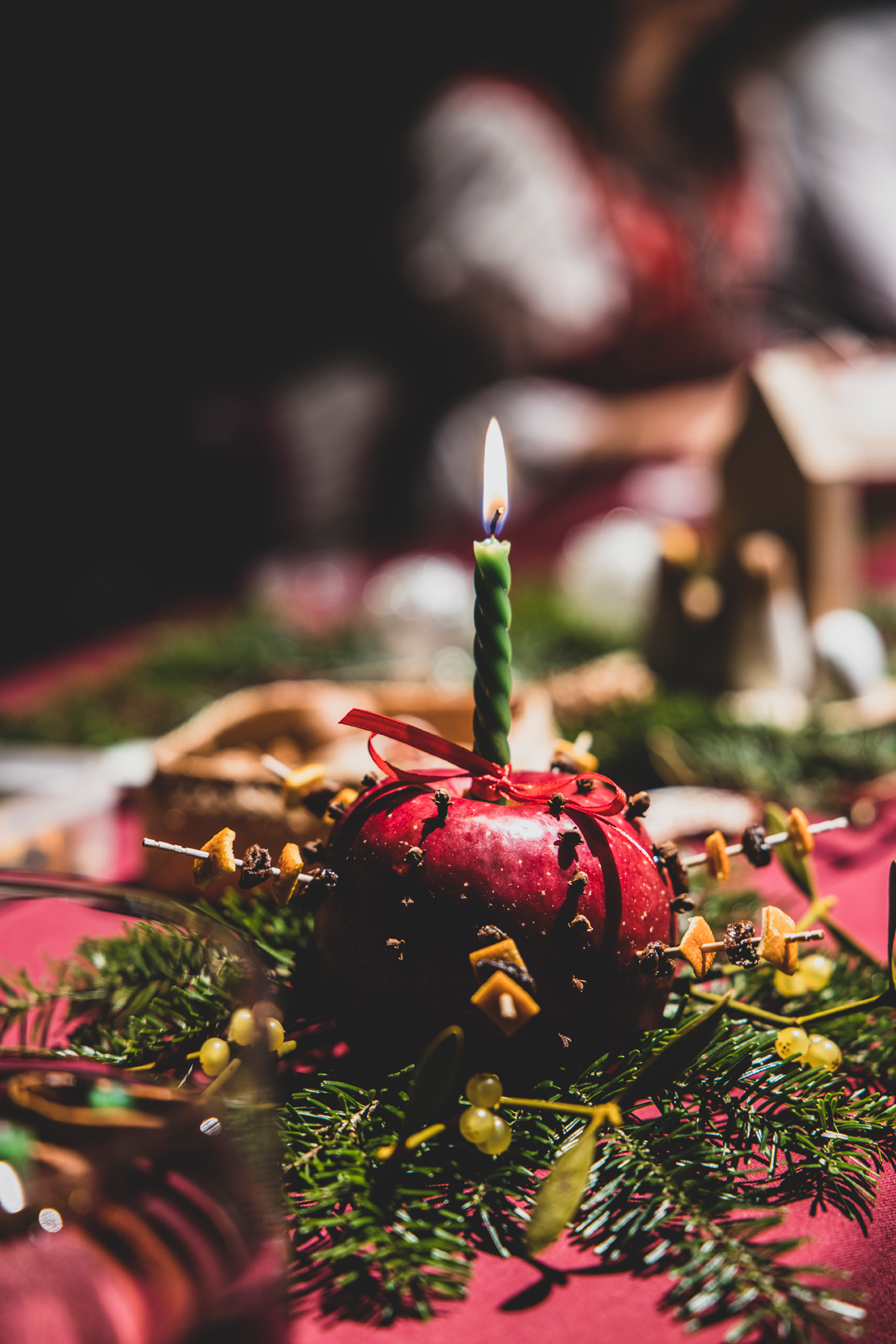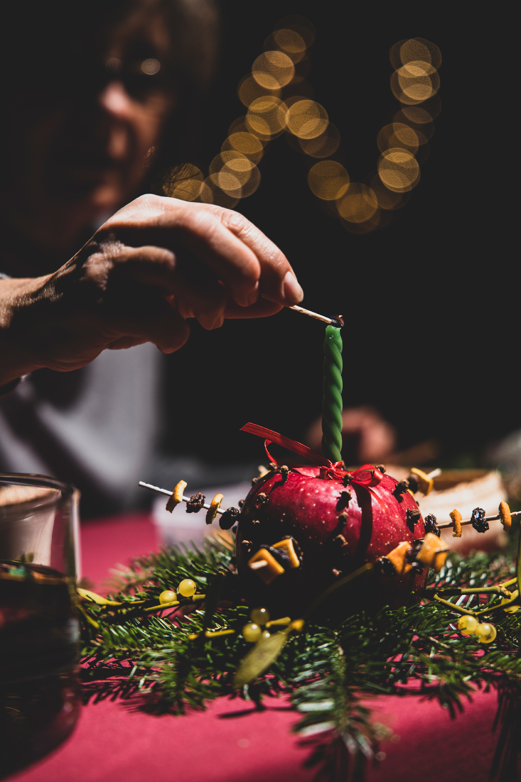 Jedną z tradycyjnych dekoracji świątecznych są pływające na wodzie w łupinach orzechów świeczki. Na stole kładzie się też gałęzie jemioły oraz jabłka udekorowane goździkami czy skórką z pomarańczy ze świeczkami, dzięki którym wokół unosi się przyjemna woń.