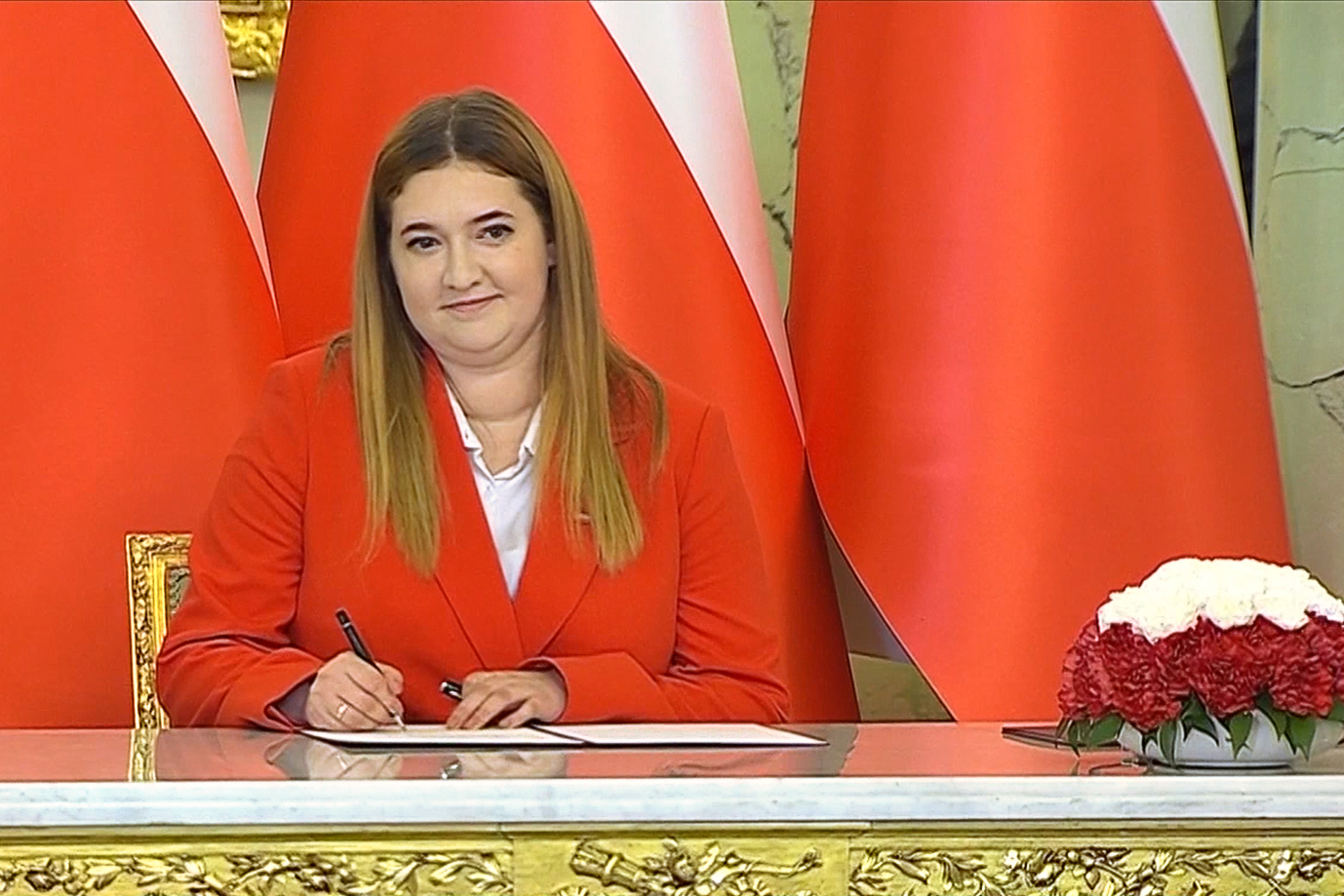 Immediately after the ceremony at the Presidential Palace, the handover of office from the former Minister Robert Telus to the new Minister Anna Gembicka took place.
