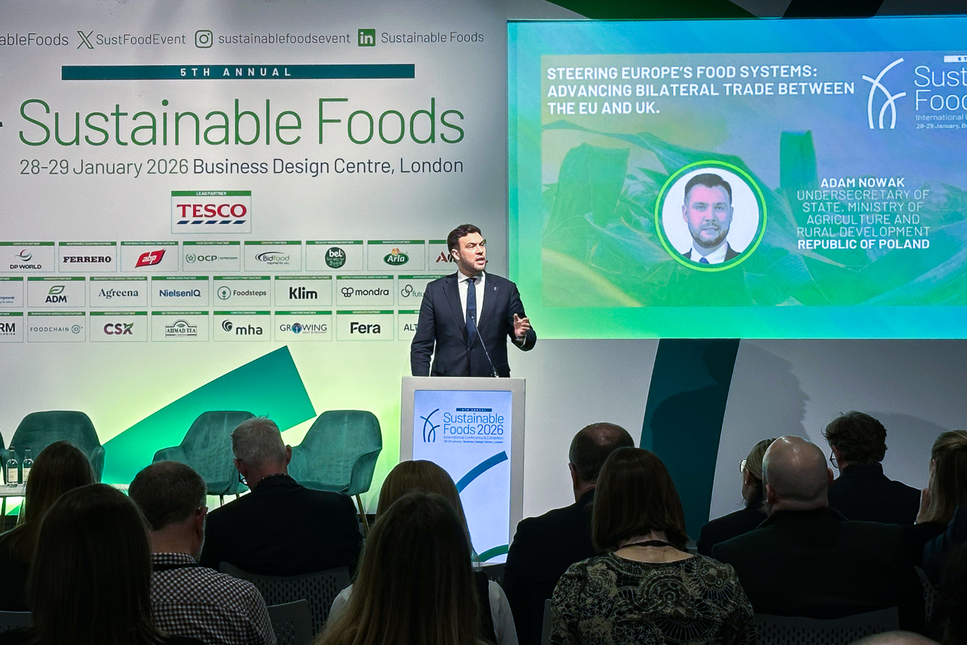 In London, the 2026 Sustainable Foods international conference was held, dedicated to the future of global food systems. The event was attended by Adam Nowak, Undersecretary of State at the Ministry of Agriculture and Rural Development, who presented the Polish position on food security, agri-food trade and cooperation between the European Union and the United Kingdom.