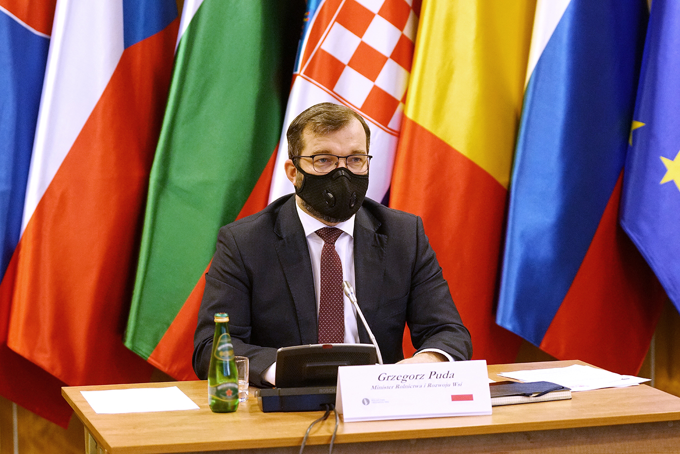 Today, the Minister of Agriculture and Rural Development Grzegorz Puda hosted a meeting of the Ministers of Agriculture of the Visegrad Group countries in the format extended to the countries of the region, i.e. Bulgaria, Croatia, Romania and Slovenia (GV4+4).