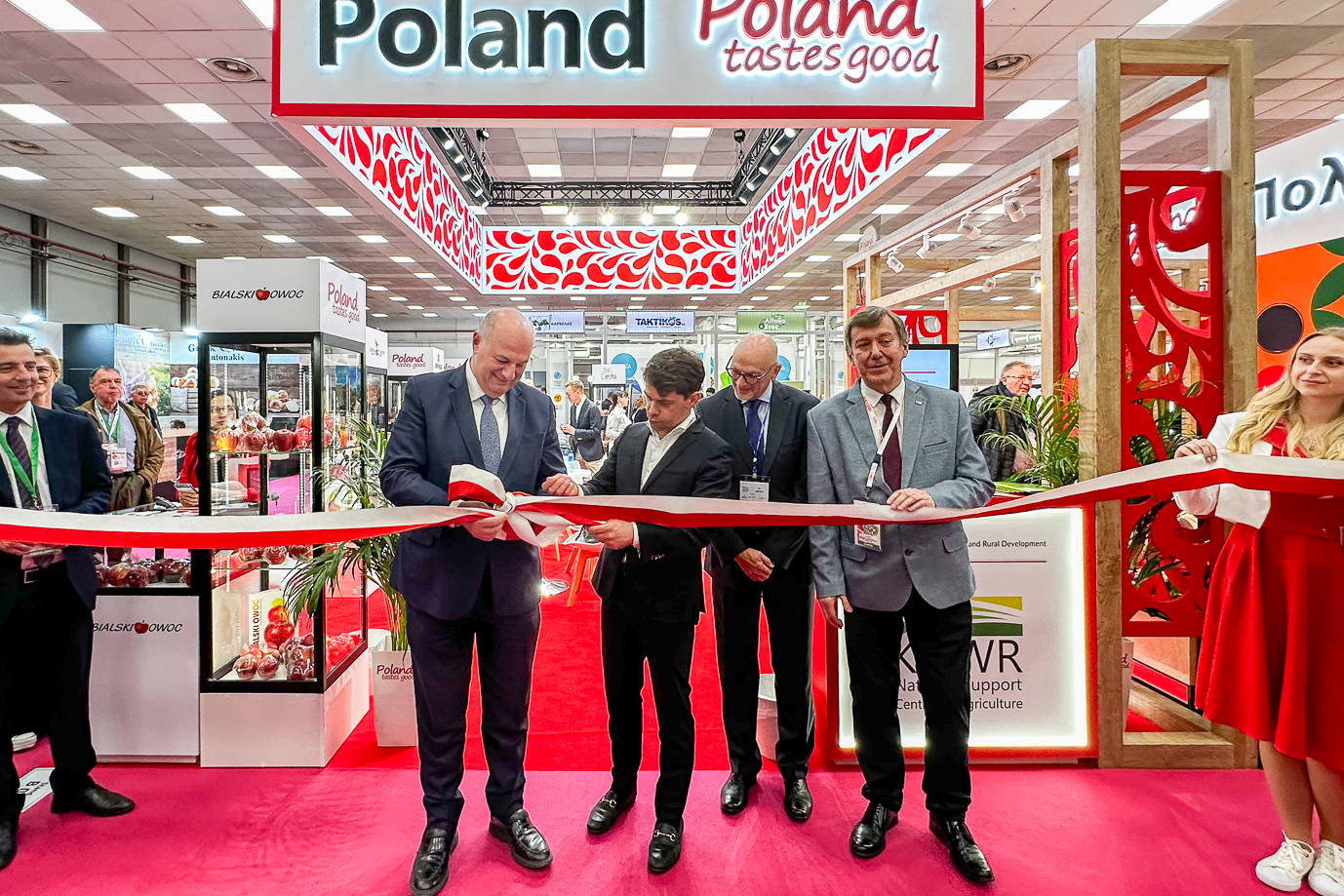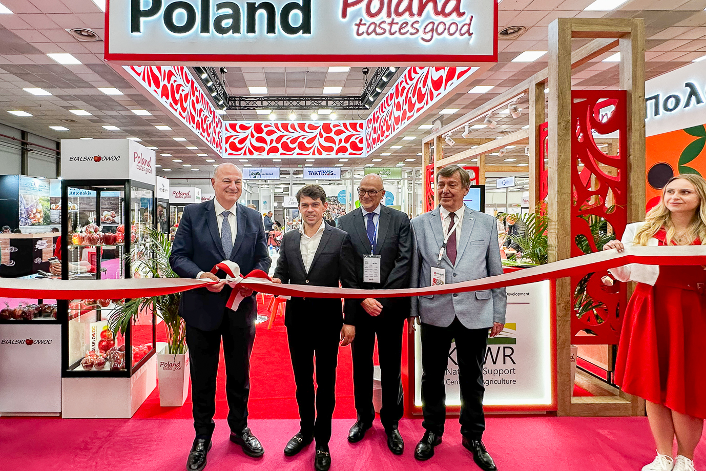 Secretary of State Michał Kołodziejczak, together with the Deputy Director General of the National Support Centre for Agriculture (KOWR), the Ambassador of the Republic of Poland to Athens, and a representative of the Greek-Polish Chamber of Investment and Trade, officially opened the Polish stand at the FRESKON fair. Ten companies from the fruit and vegetable sector are showcasing their products at the Polish stand.