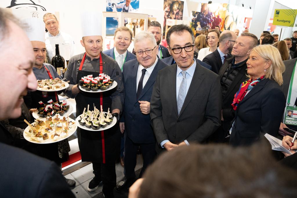 During the official visit of the fair, the Federal Minister of Food and Agriculture Cem Özdemir accompanied by the Mayor of Berlin Kai Wenger and the Chairman of the German Farmer's Association Joachim Rukwied, Chairman of the Federation of German Food and Drink Industries Christian von Boetticher as well as the Managing Director of Messe Berlin GmbH Mario Tobias, was the guest of the Polish national stand.