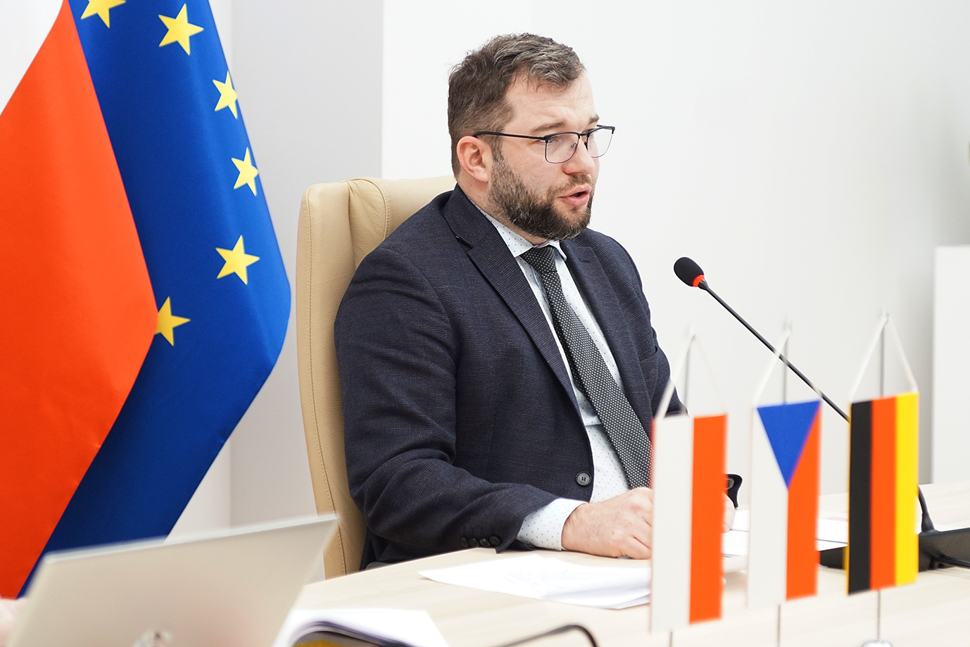 Minister Grzegorz Puda participated today in another trilogue meeting with the Minister of Food and Agriculture of the Federal Republic of Germany Julia Klöckner and the Minister of Agriculture of the Czech Republic Miroslav Toman. The talks were also attended by the Chief Veterinary Officers of the three countries. The meeting was held in an online formula.