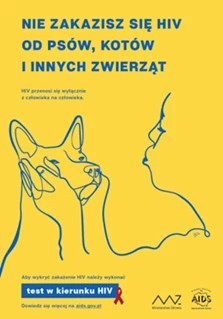 - nie można zakazić się HIV od psów, kotów czy innych zwierząt – wirus przenosi się wyłącznie z człowieka na człowieka;