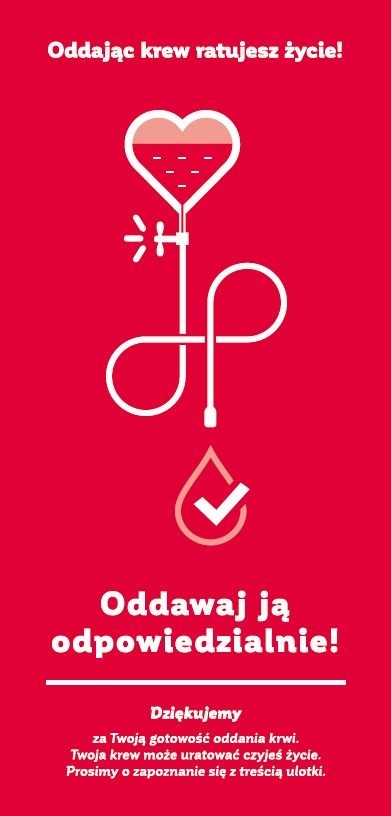 Uzupełnieniem treści zawartych w ulotce jest plakat Oddając krew odpowiedzialnie, ratujesz życie.