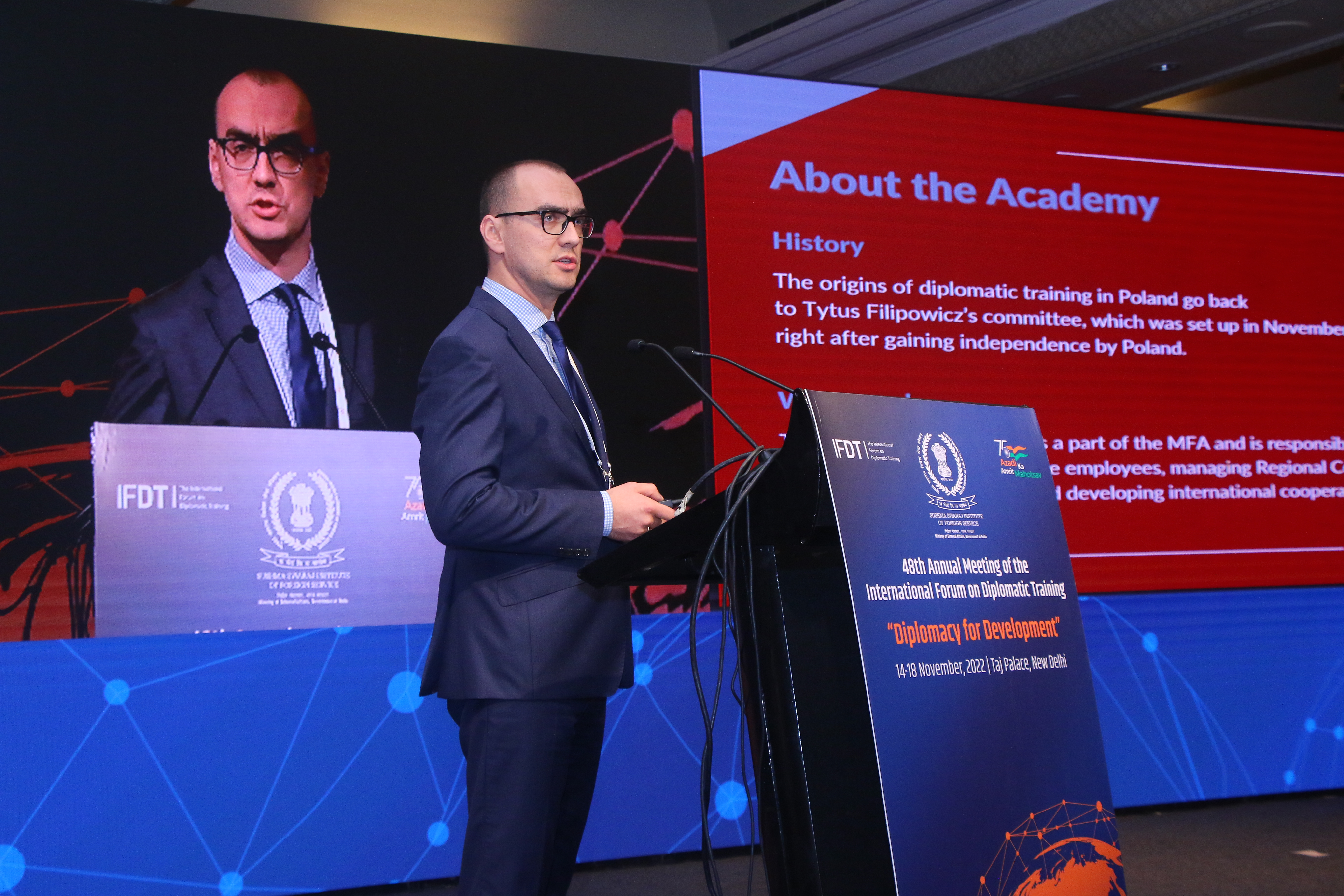 W dn. 14-18 listopada 2022 r. w Nowym Delhi odbyło się 48. spotkanie International Forum on Diplomatic Training (IFDT), gremium zrzeszającego instytucje zajmujące się szkoleniem dyplomatów z całego świata. Akademię Dyplomatyczną, która jest członkiem IFDT od tego roku, reprezentował zastępca dyrektora Bartosz Marcinkowski.