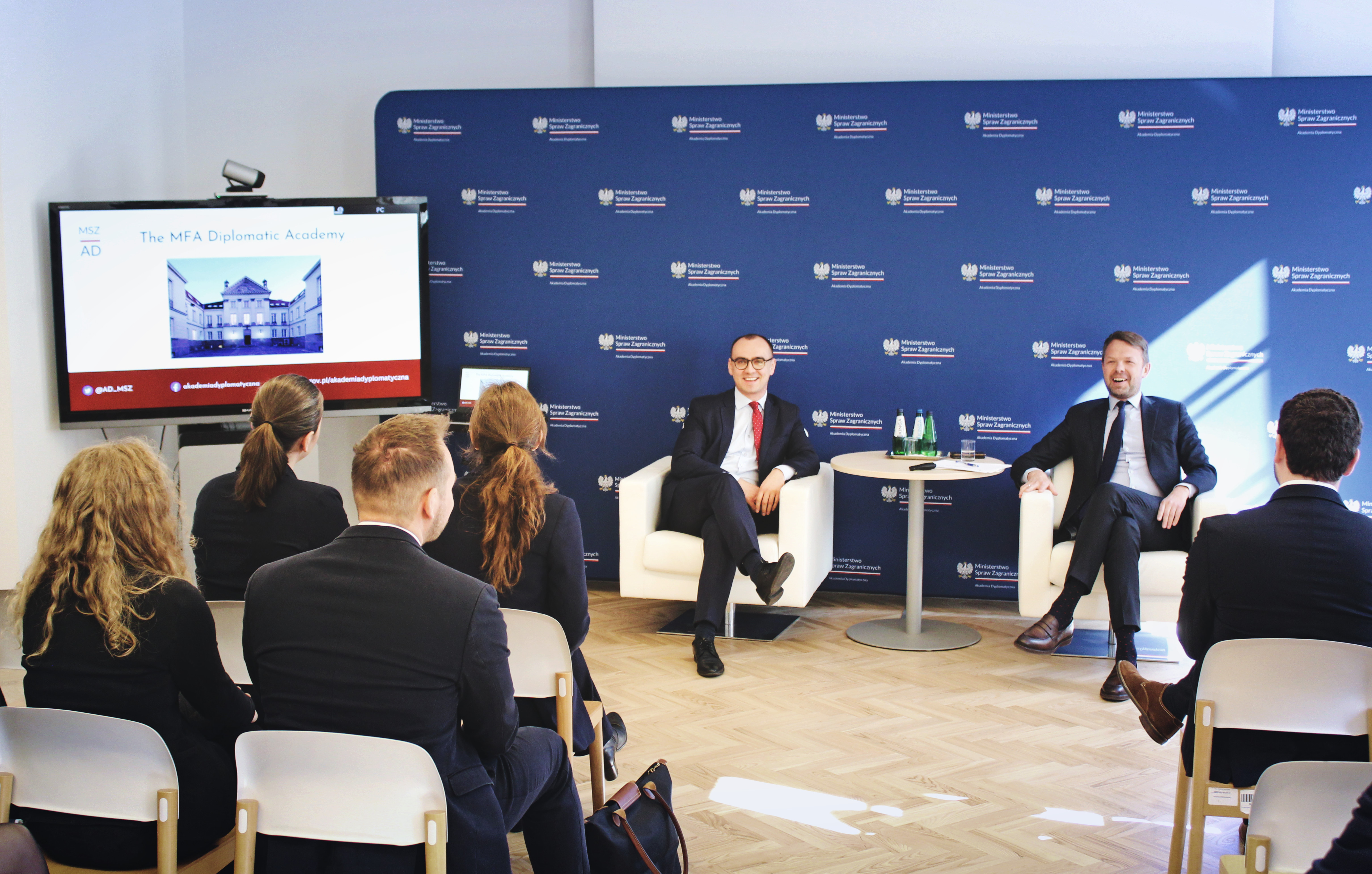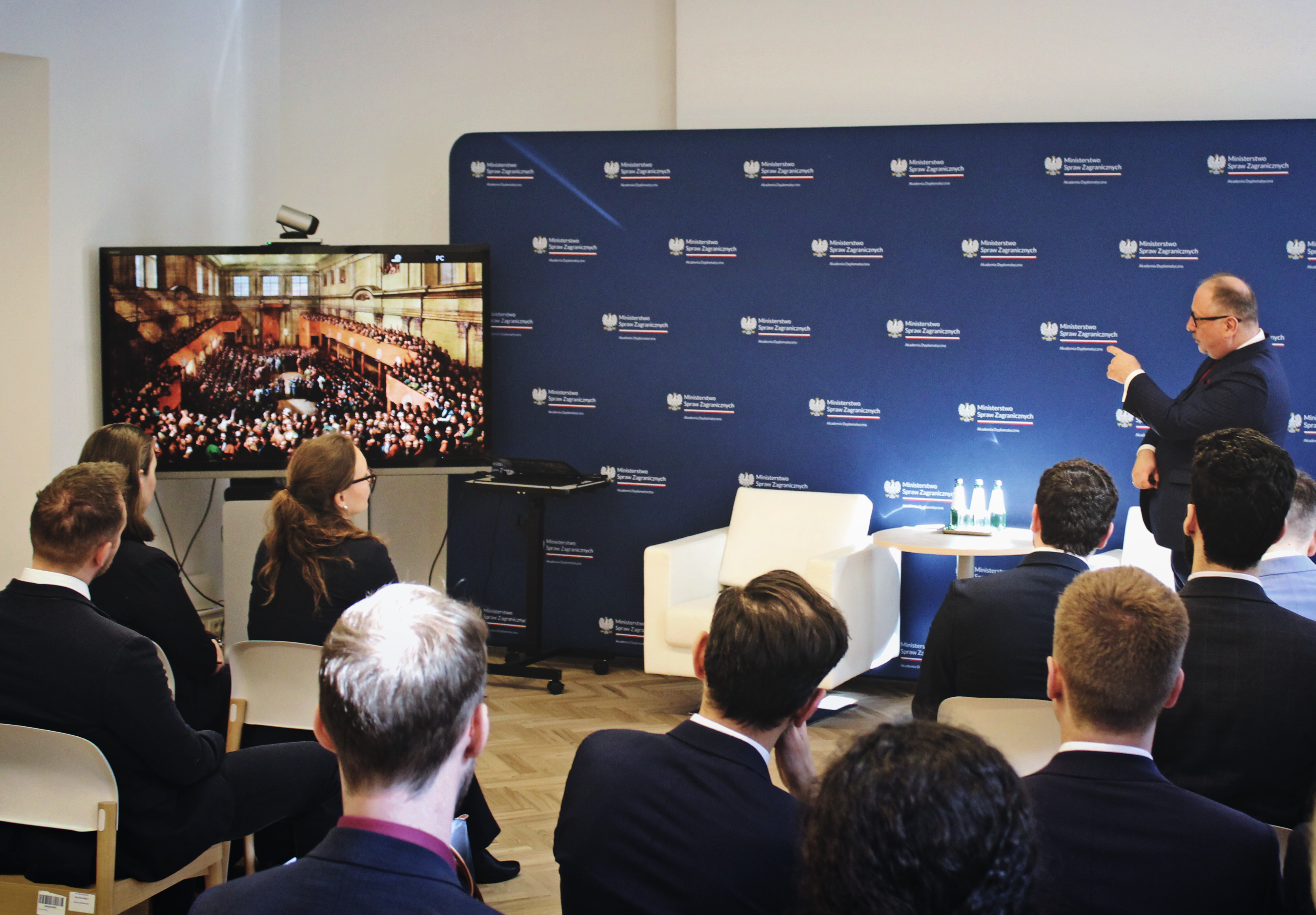 W czasie wizyty aplikanci mieli okazję zapoznać się z priorytetami polskiej polityki zagranicznej, polskim spojrzeniem na rosyjską agresję na Ukrainę oraz działaniami Akademii Dyplomatycznej MSZ, o których opowiedział m. in. Szef Służby Zagranicznej Arkady Rzegocki.
