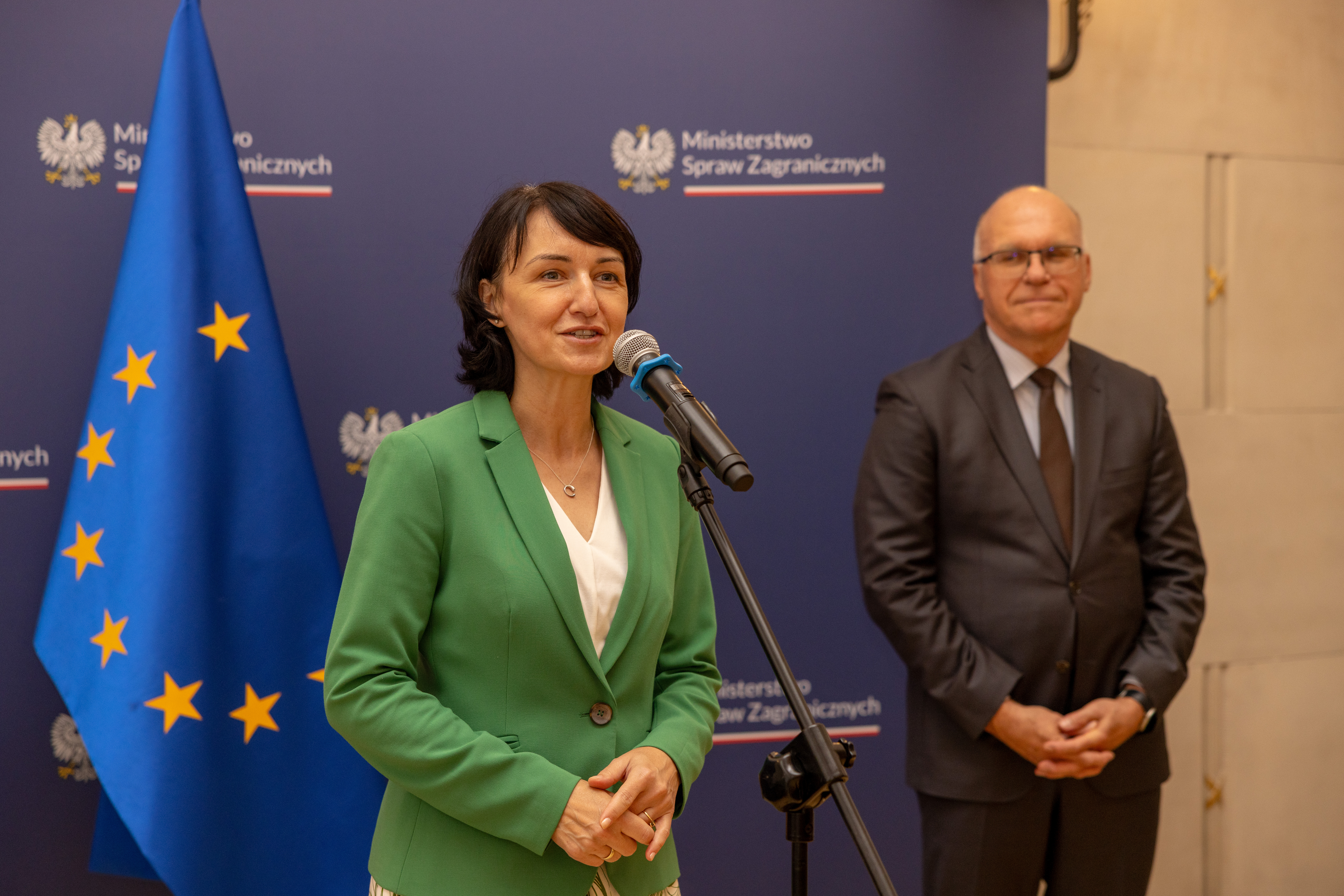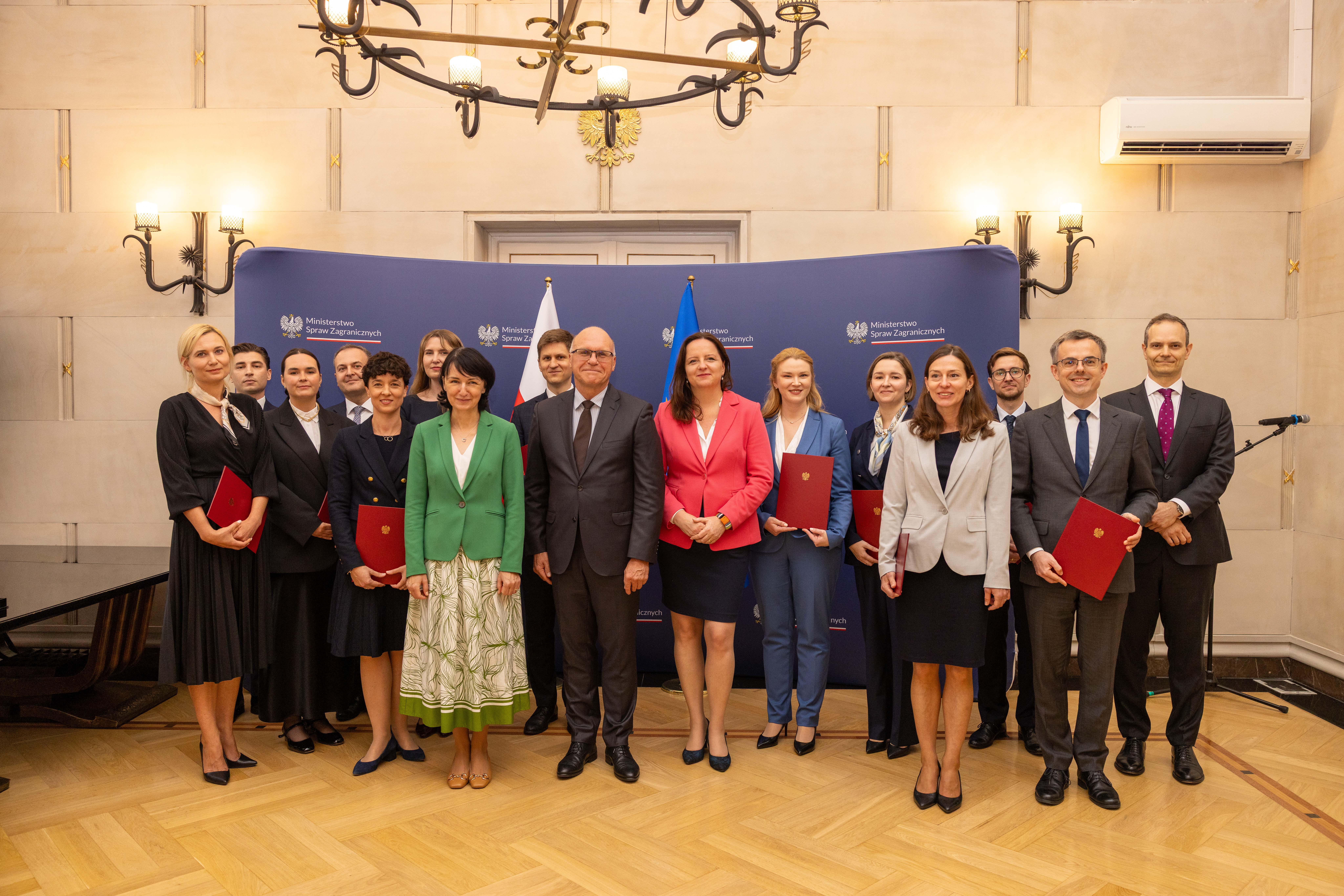 Ślubowanie w imieniu Ministra Spraw Zagranicznych przyjęła pani Henryka Mościcka-Dendys, Podsekretarz Stanu w Ministerstwie Spraw Zagranicznych, natomiast akty nadania po raz pierwszy stopni dyplomatycznych wręczył pan Rafał Wiśniewski, Szef Służby Zagranicznej, Dyrektor Generalny MSZ.