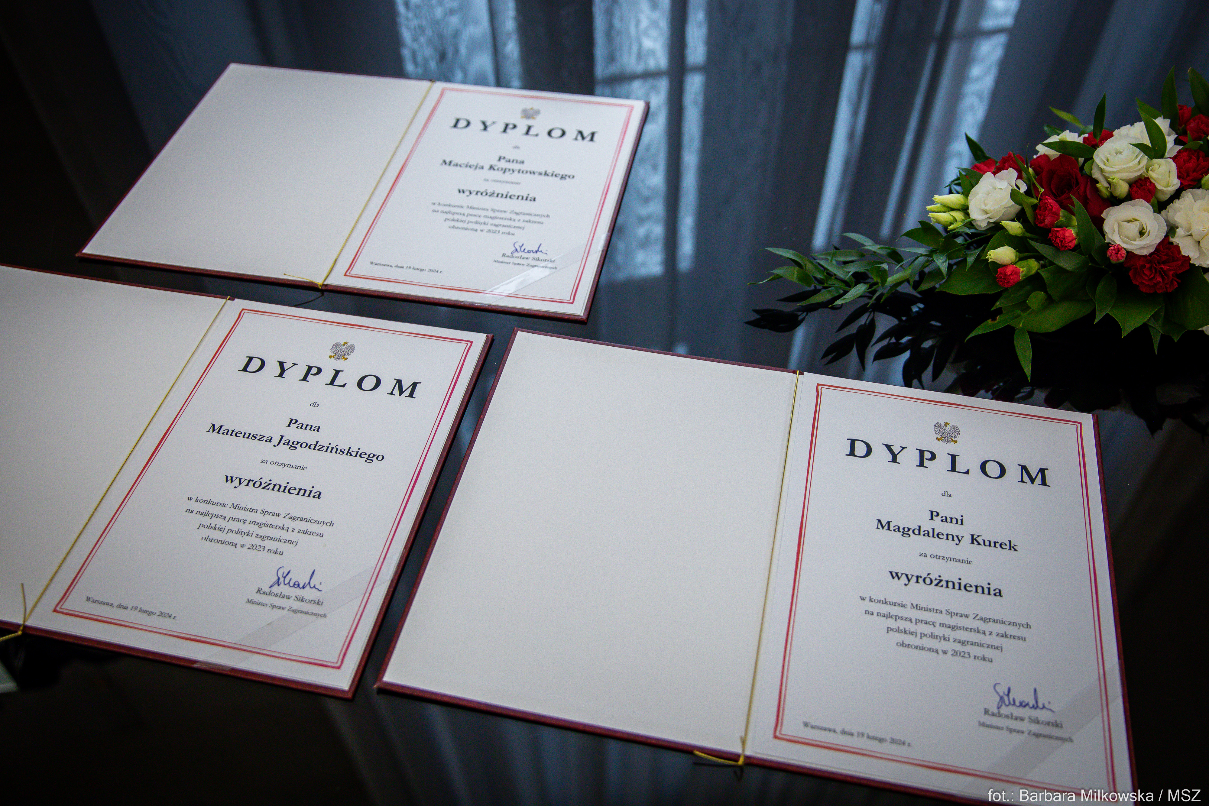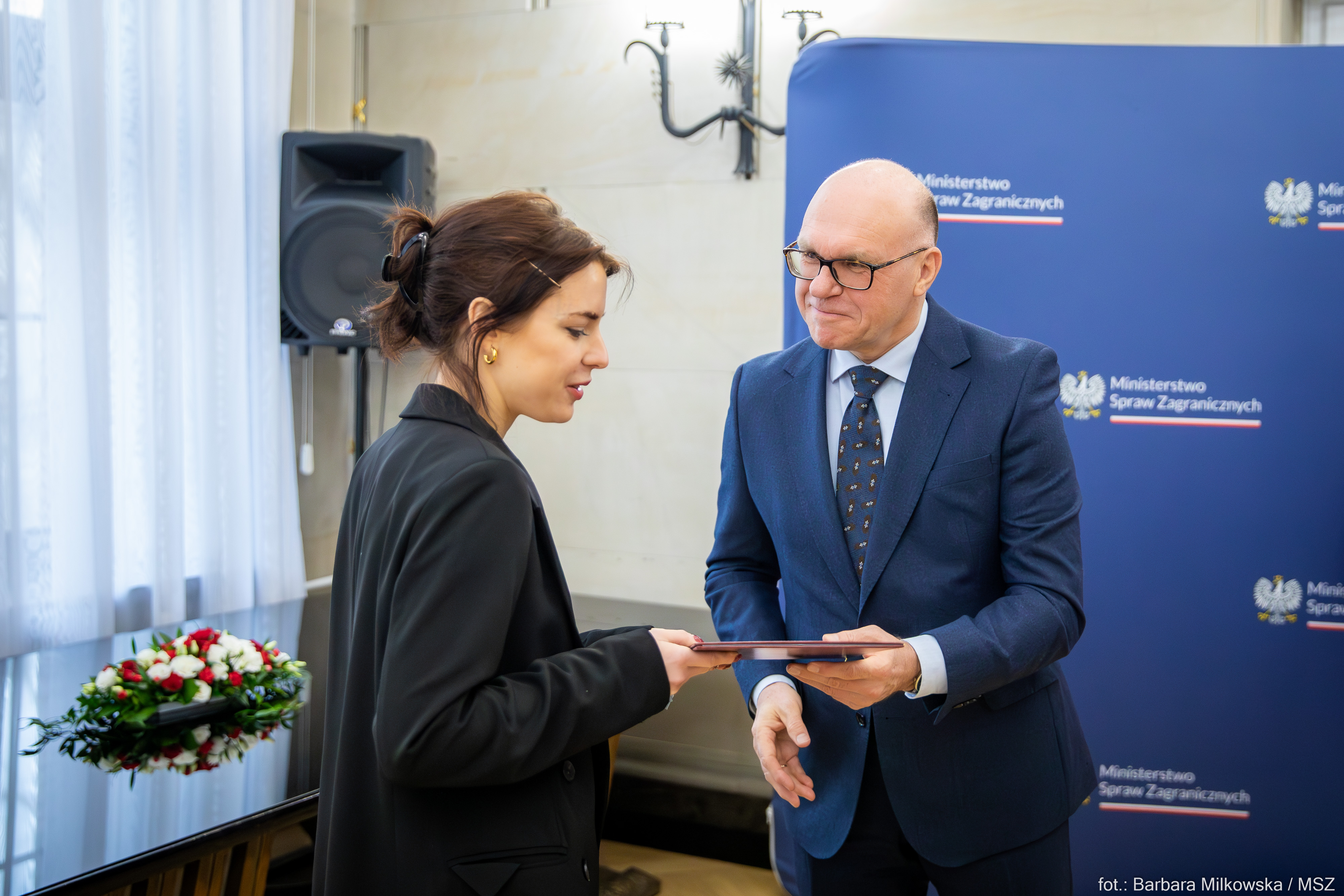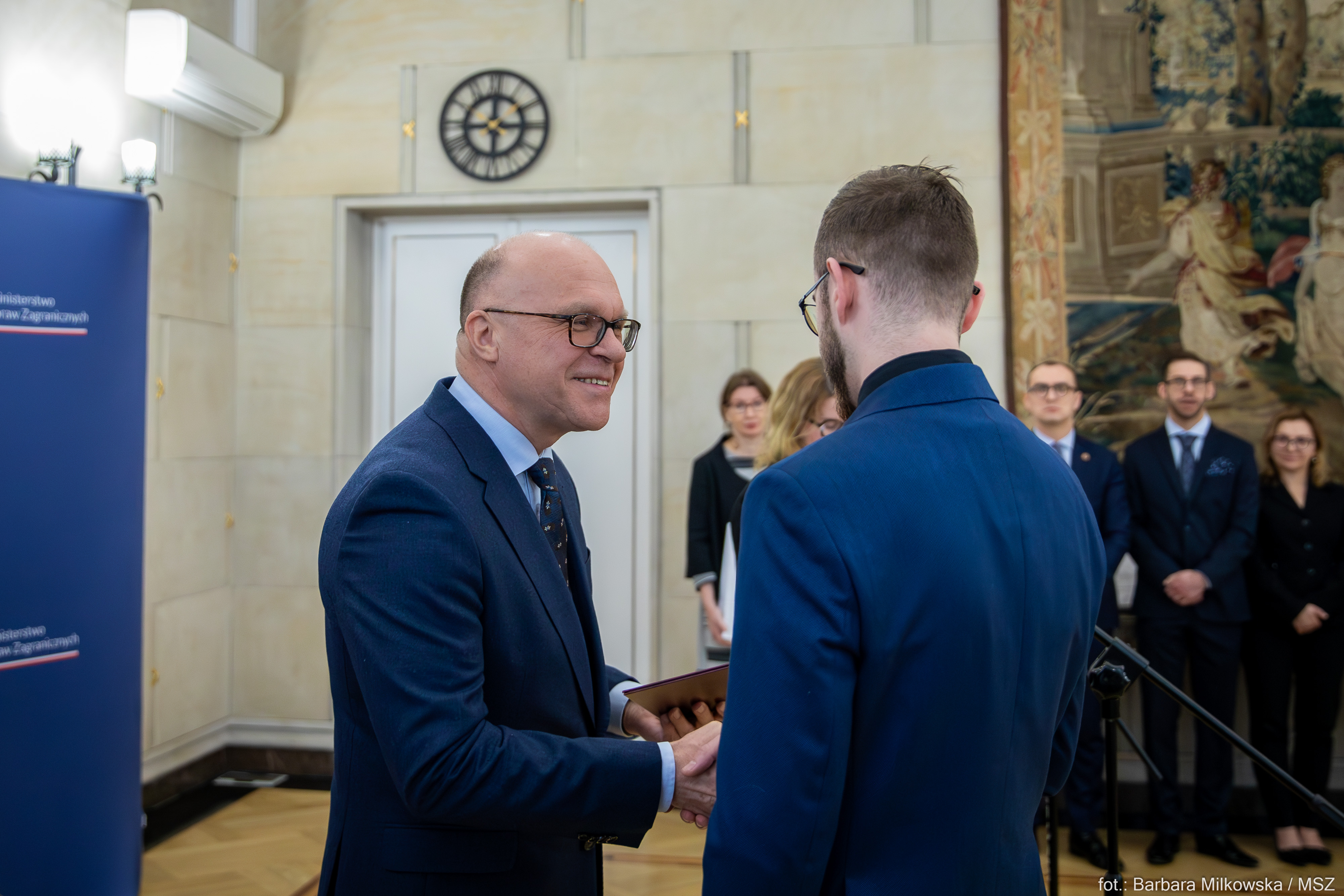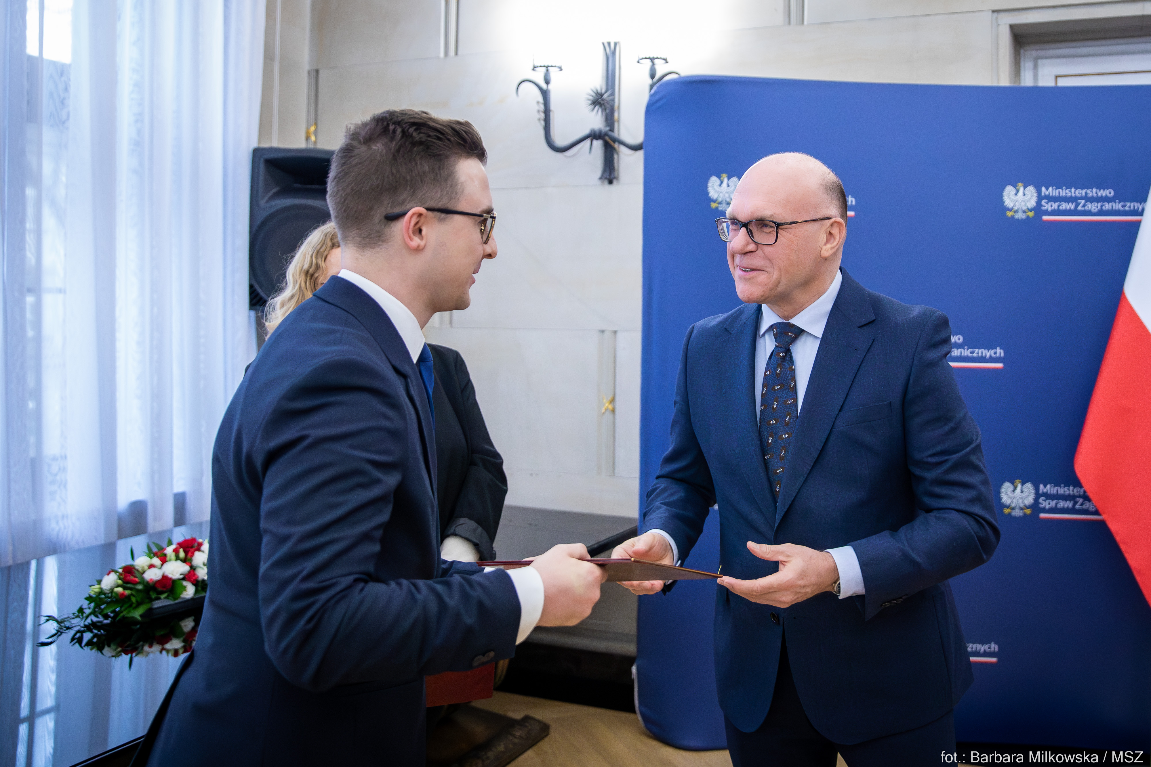 19 lutego 2024 r. Szef Służby Zagranicznej Rafał Wiśniewski w imieniu Ministra Spraw Zagranicznych Radosława Sikorskiego wręczył wyróżnienia laureatom 35. edycji Konkursu Ministra SZ na najlepszą pracę magisterską z zakresu polskiej polityki zagranicznej.