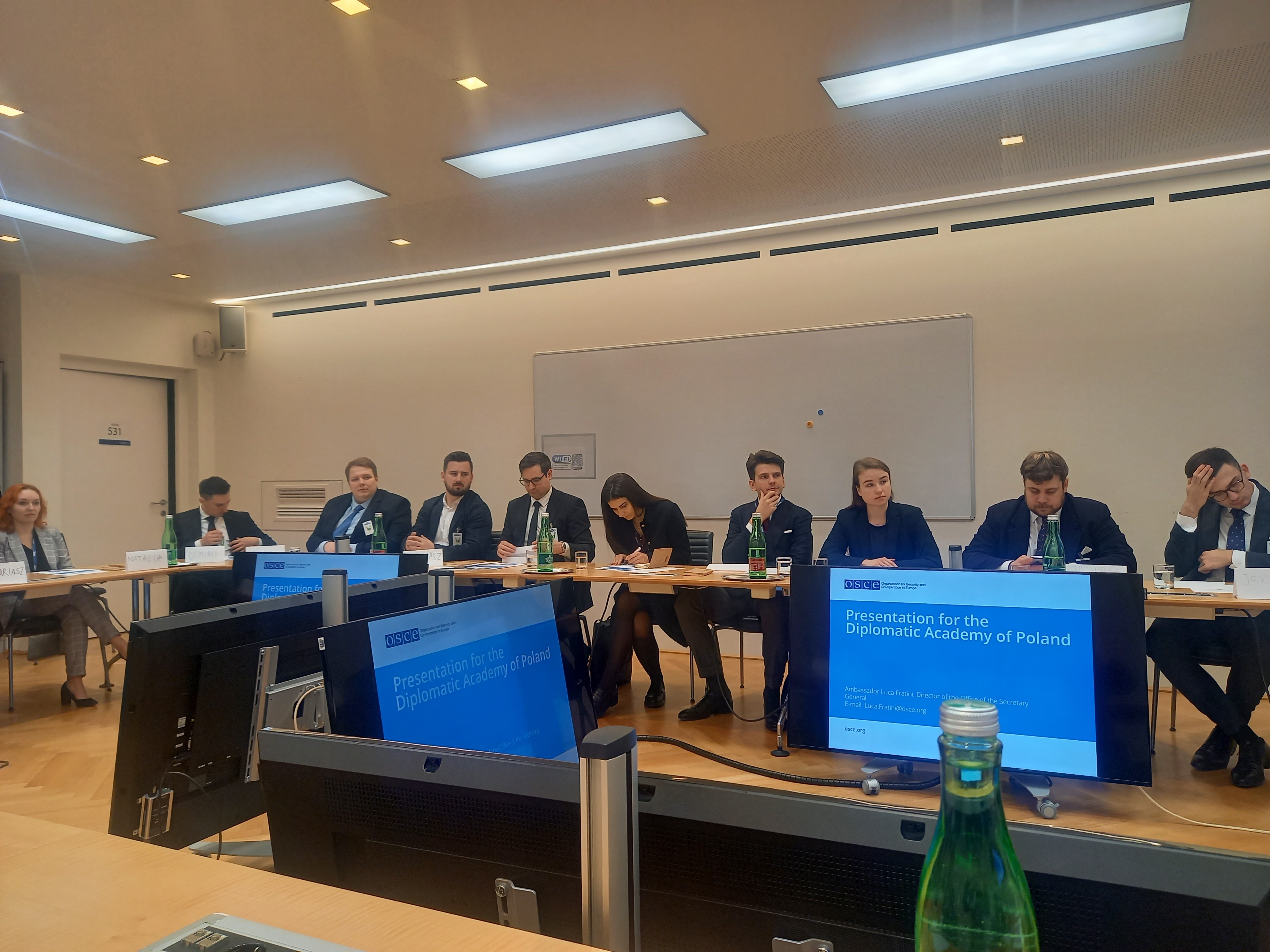 Aplikanci odbyli spotkania z szefami i zespołami Ambasad RP oraz Instytutów Polskich w obu krajach, a także przysłuchiwali się obradom Rady Sesji Stałej OBWE w Hofburgu. W siedzibie organizacji zrealizowano również spotkania z Dyrektorem Biura SG OBWE oraz ze Stałym Przedstawicielem RP przy tej organizacji. Wyjazd był również okazją do rozmów z przedstawicielami agend ONZ w Wiedniu, tj. MAEA, UNIDO, UNODC oraz instytucji wykonawczej UE, tj. European Labour Authority z siedzibą w Bratysławie. Aplikanci spotkali się również z zatrudnionymi na wyższych szczeblach w ww. instytucjach polskimi obywatelami. Pobyt był dodatkowo okazją do rozmów słuchaczy z dyrektorem Akademii Dyplomatycznej w Wiedniu Emilem Brixem.