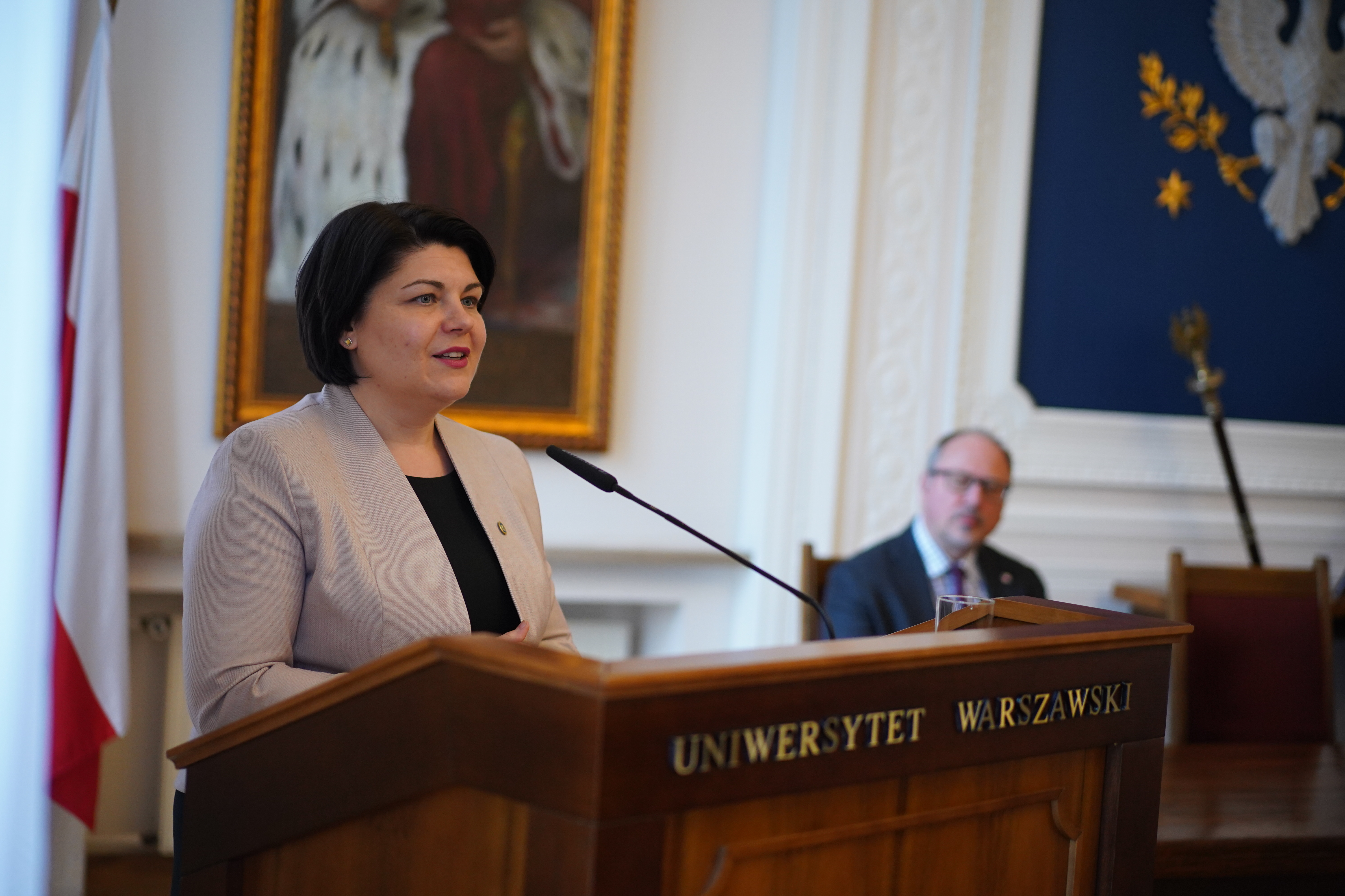 Wykład premier Mołdawii Natalii Gavrility w Sali Senatu UW i spotkanie z gronem eksperckim w Sali złotej UW były jednym z punktów odbywającej się od 7 do 9 kwietnia wizyty dyplomatycznej w Warszawie.