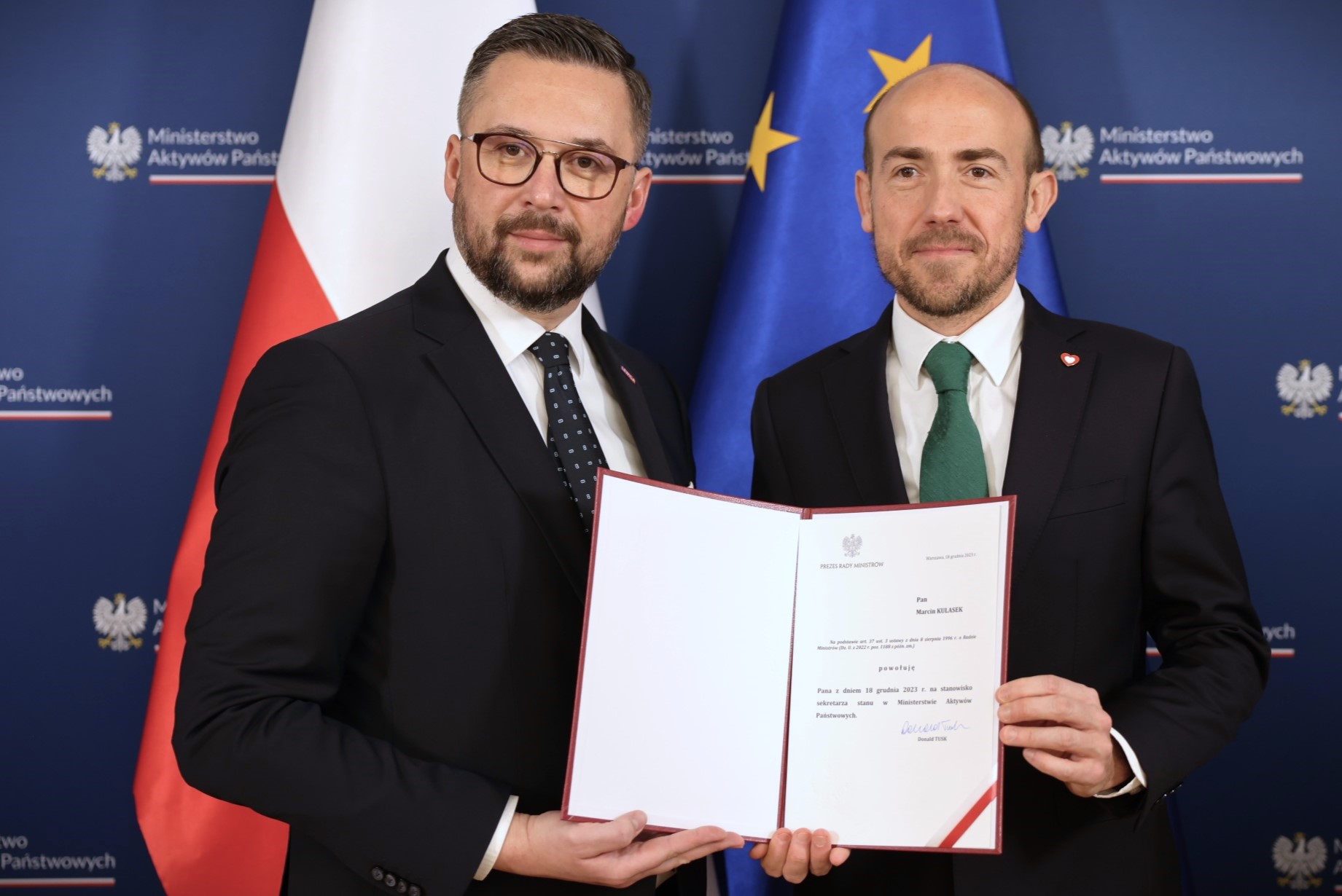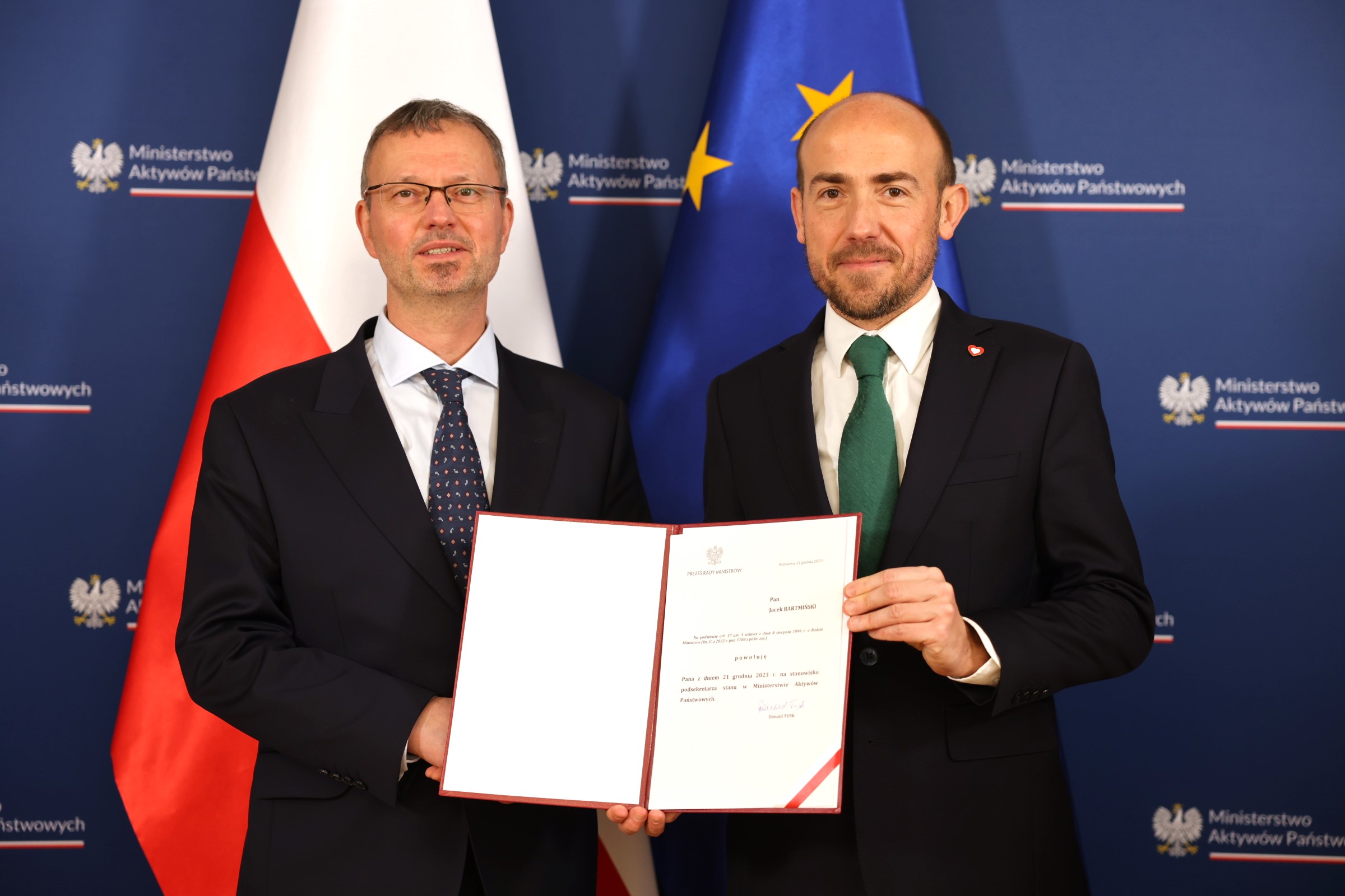 Zbigniew Ziejewski oraz Marcin Kulasek zostali powołani przez premiera Donalda Tuska na sekretarzy stanu, natomiast Jacek Bartmiński na podsekretarza stanu w Ministerstwie Aktywów Państwowych. Nominacje wręczył dziś minister Borys Budka.