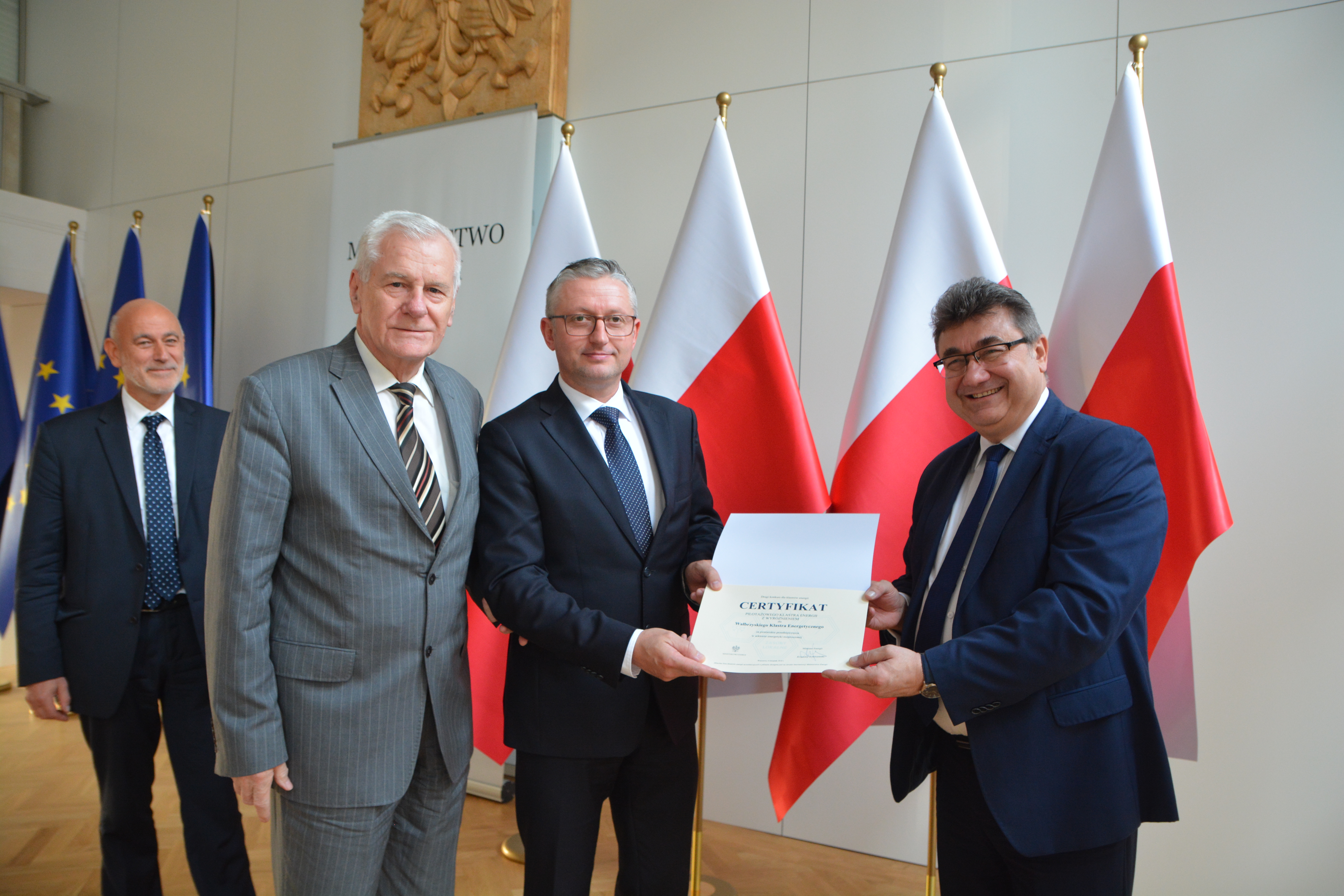 - Rozwój idei klastrów energii prowadzi do stabilnych dostaw energii i samowystarczalności energetycznej na poziomie gminy czy powiatu. To jednocześnie szansa na większe bezpieczeństwo energetyczne na poziomie lokalnym – powiedział wiceminister energii Grzegorz Tobiszowski podczas ogłoszenia wyników II konkursu na Certyfikat Pilotażowego Klastra Energii. Uroczystość odbyła się 6 listopada 2018 roku w Ministerstwie Energii.