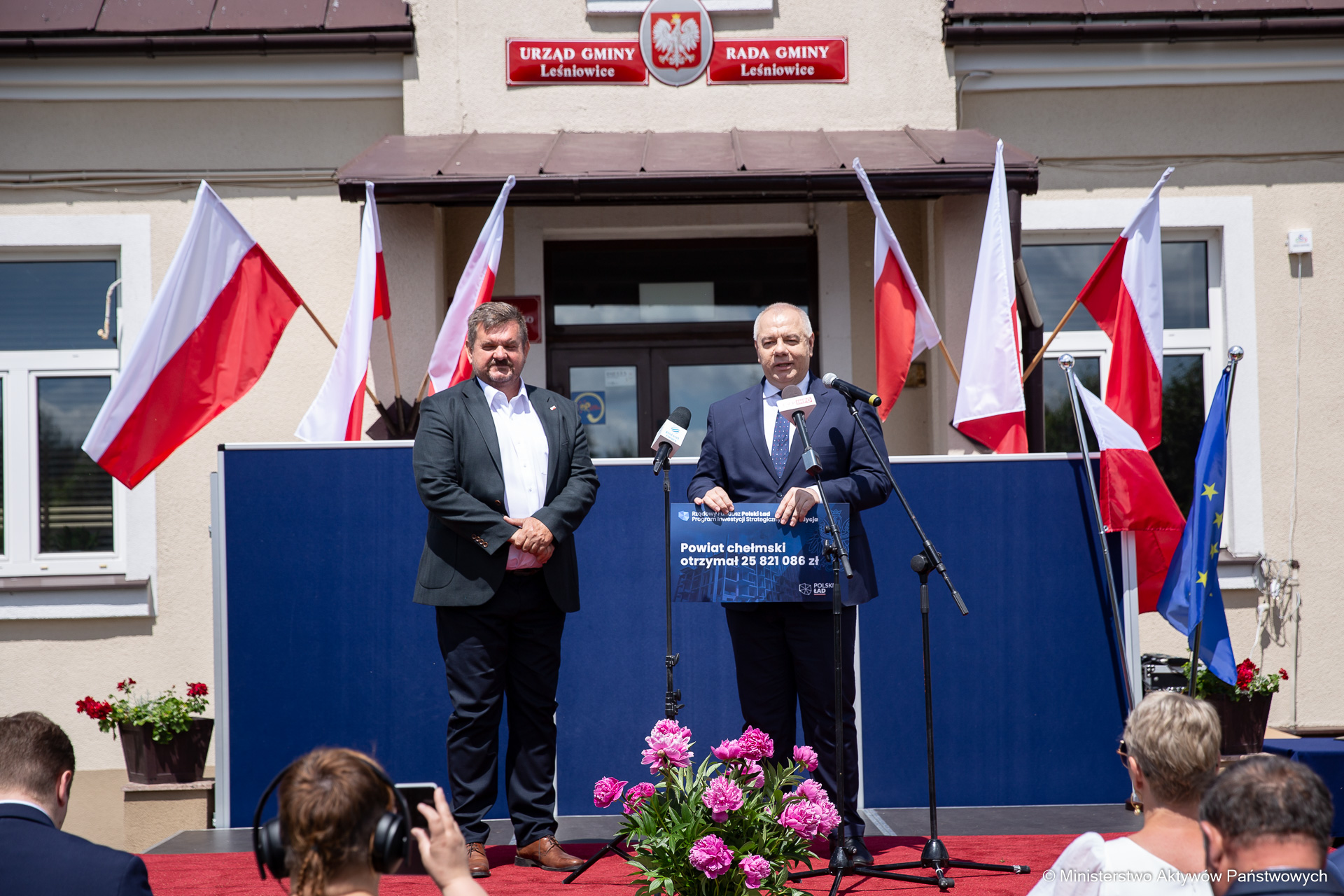 Wicepremier Jacek Sasin złożył wizytę na Lubelszczyźnie, w powiatach chełmskim i zamojskim, gdzie wręczył samorządom promesy na ponad 400 mln złotych. Środki zostaną przeznaczone na rozbudowę infrastruktury drogowej, termomodernizację budynków, modernizację i rozbudowę obiektów sportowych i kulturalno–oświatowych, czy rewitalizację terenów rekreacyjno-turystycznych.
