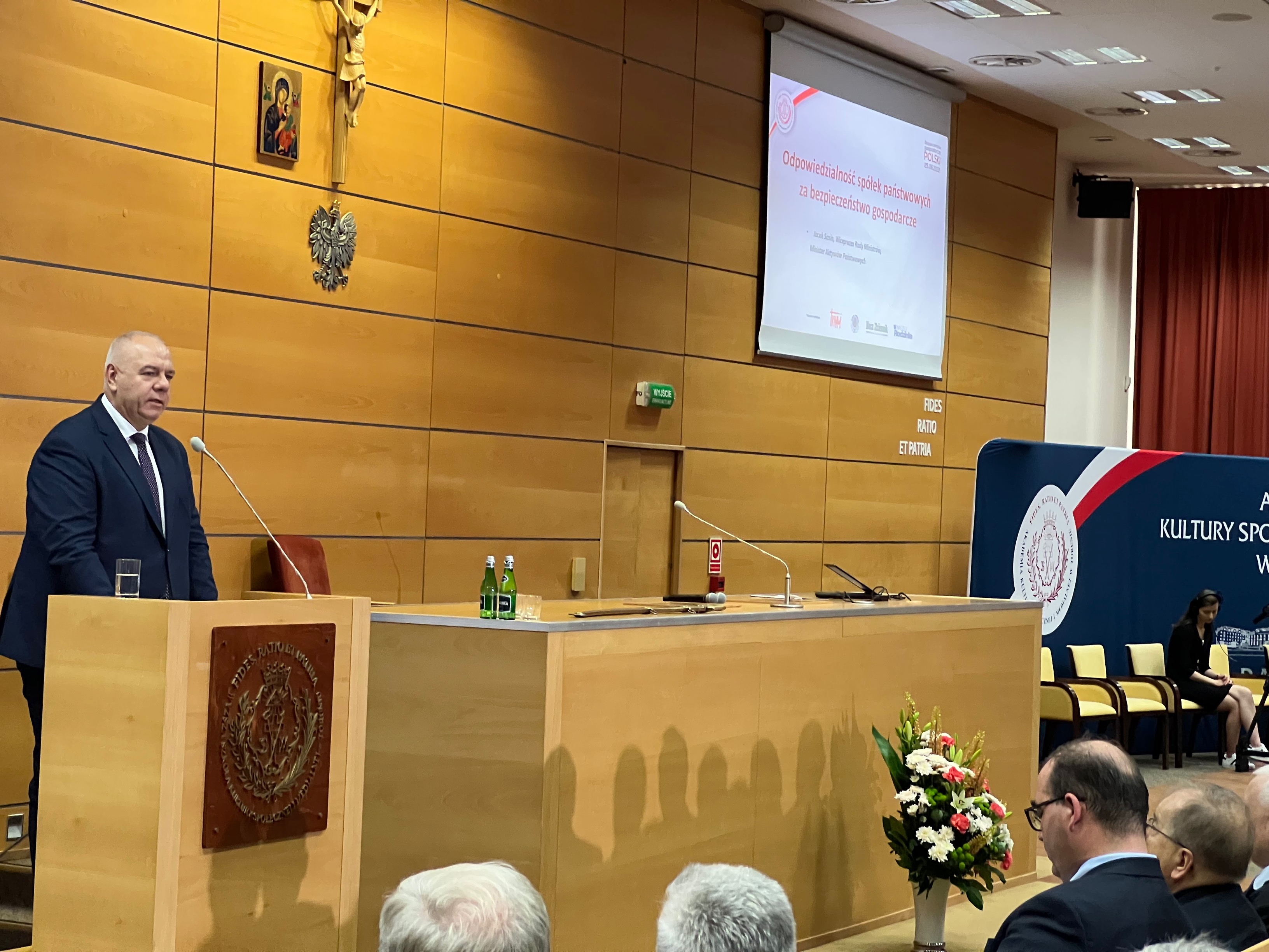 - Mamy świadomość, że państwo jest od tego by zapewnić swoim obywatelom i krajowi bezpieczeństwo: energetyczne, militarne i żywnościowe. Robimy to poprzez rozwój i wsparcie spółek Skarbu Państwa - mówi wicepremier Jacek Sasin podczas konferencji "Bezpieczeństwo gospodarcze Polski” w Toruniu.
