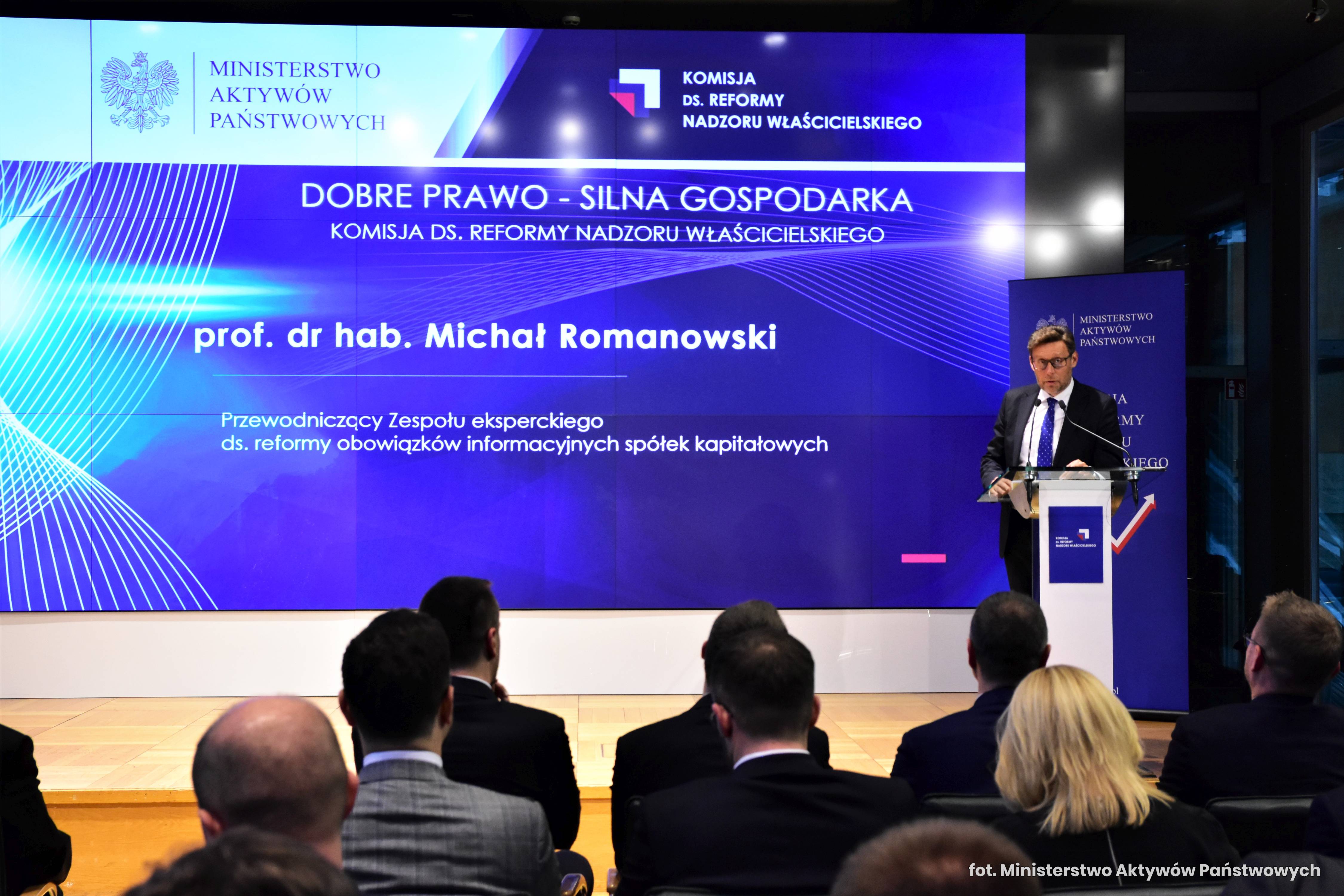 - Prof. dr hab. Michał Romanowski, Przewodniczący Zespołu ds. reformy obowiązków informacyjnych spółek kapitałowych, zakreślił problematykę corporate governance. Nawiązując do wypowiedzi poprzedniego prelegenta, prof. Romanowski podkreślił istotę wyważenia objętości proponowanych reform, aby uniknąć ryzyka nadmiernej regulacji. – Brak dostępu do informacji uniemożliwia efektywny nadzór właścicielski, zmusza do poszukiwania protez rozwiązań i skazuje na działanie w „strefie cienia”. (…) Adresatem naszych propozycji będzie około 800 spółek notowanych na Giełdzie Papierów Wartościowych i NewConnect – zaznaczył.