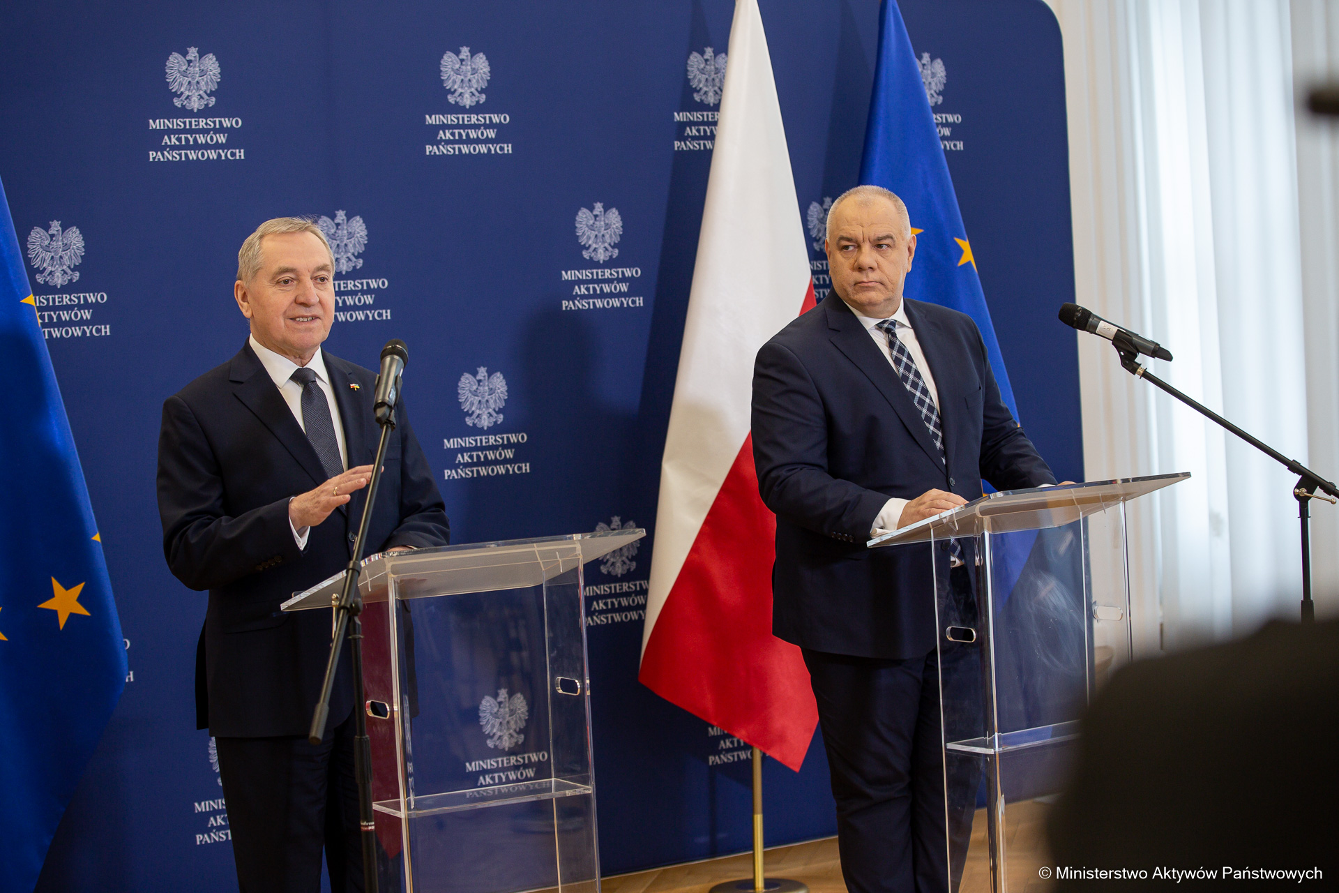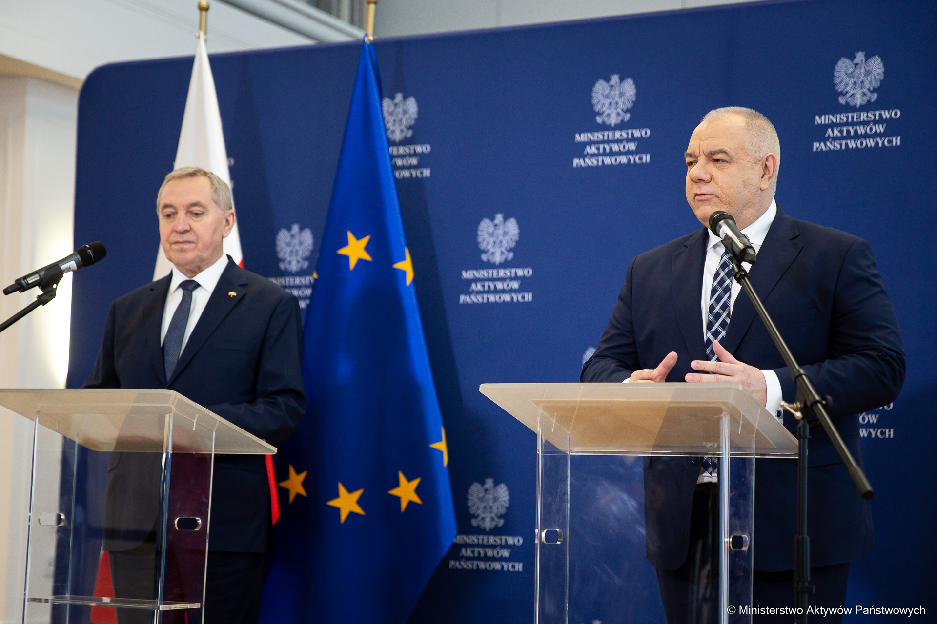 W Ministerstwie Aktywów Państwowych odbyła się konferencja poświęcona finalizacji budowy Krajowej Grupy Spożywczej, w której udział wzięli wicepremierzy Jacek Sasin, minister aktywów państwowych oraz Henryk Kowalczyk, minister rolnictwa i rozwoju wsi.
