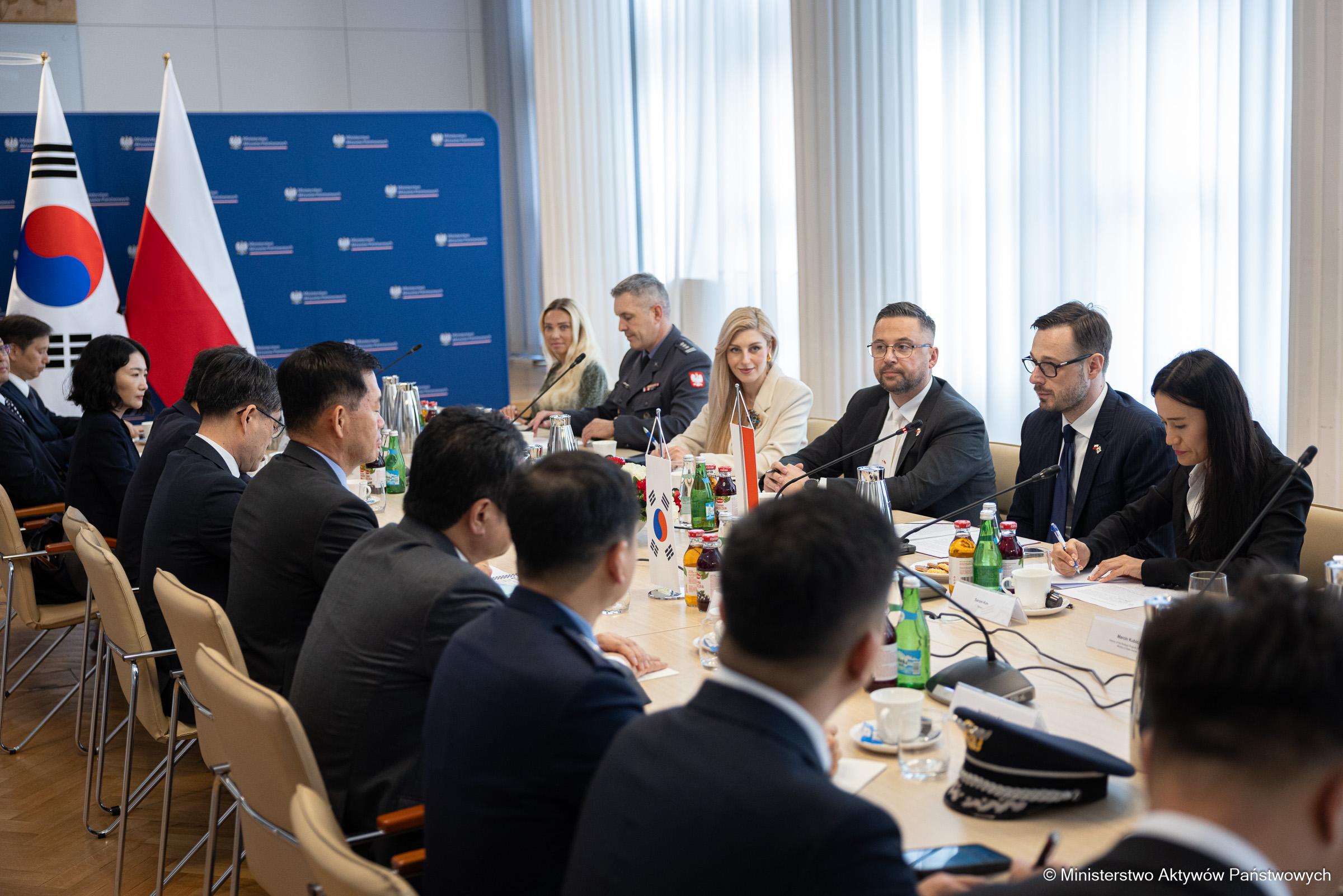Minister Aktywów Państwowych Jakub Jaworowski wziął udział w rozmowach z delegacją z Korei Południowej. W spotkaniu uczestniczył też Marcin Kulasek, wiceminister Aktywów Państwowych. Rozmowy dotyczyły współpracy między polskim i południowokoreańskim przemysłem obronnym.