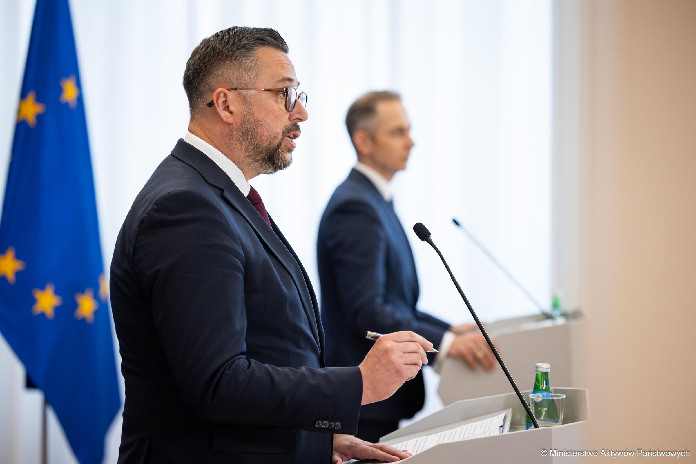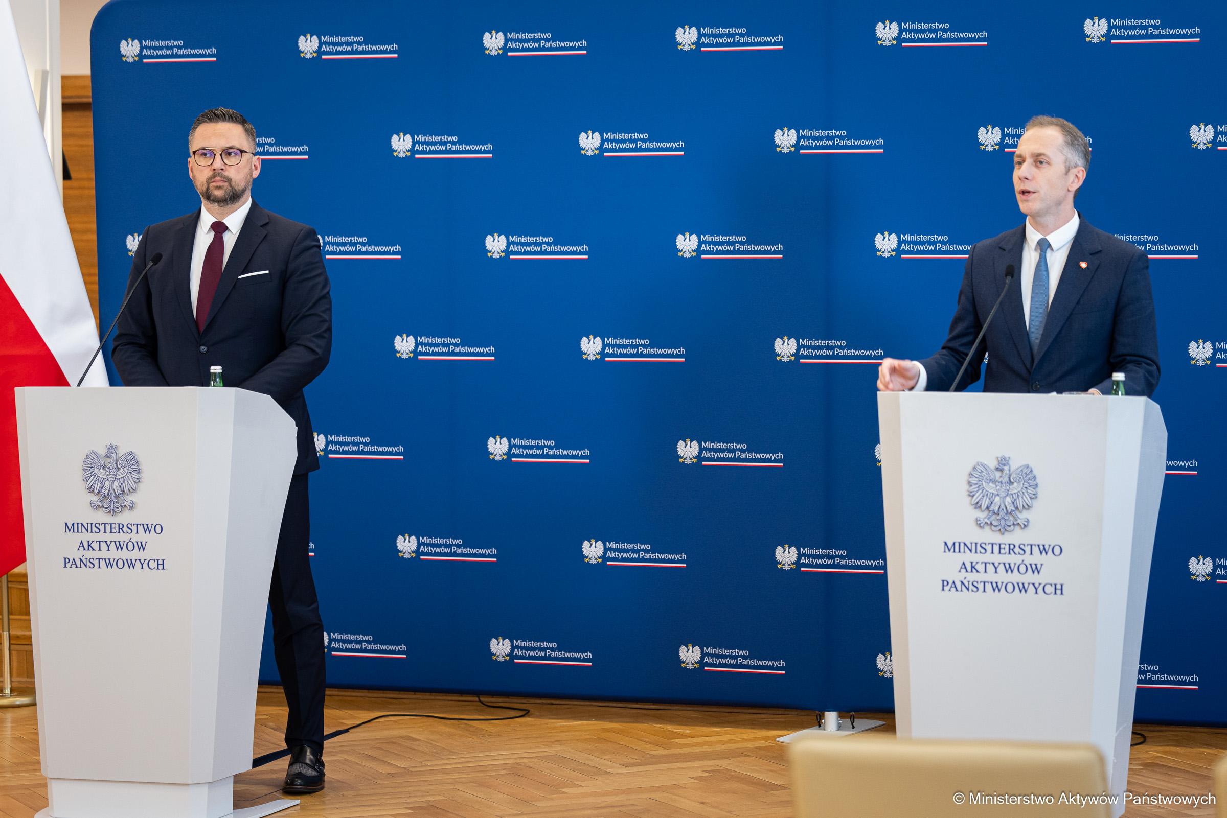 W Ministerstwie Aktywów Państwowych odbył się briefing z udziałem wiceministra aktywów państwowych Marcina Kulaska i wiceministra obrony narodowej Cezarego Tomczyka na temat nieprawidłowości przy zawieraniu przez Spółkę PGZ S.A. umowy ubezpieczenia powstających 3 fregat w ramach projektu Miecznik.
