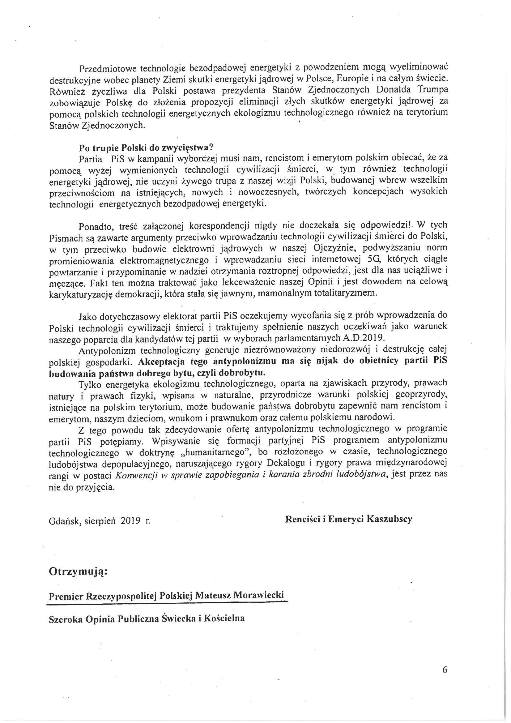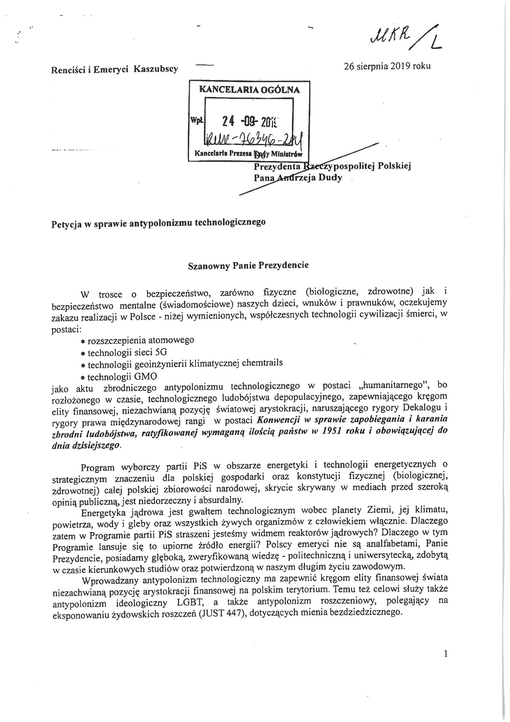 Nr 13/2019 Petycja Rencistów i Emerytów Kaszubskich w sprawie antypolonizmu technologicznego