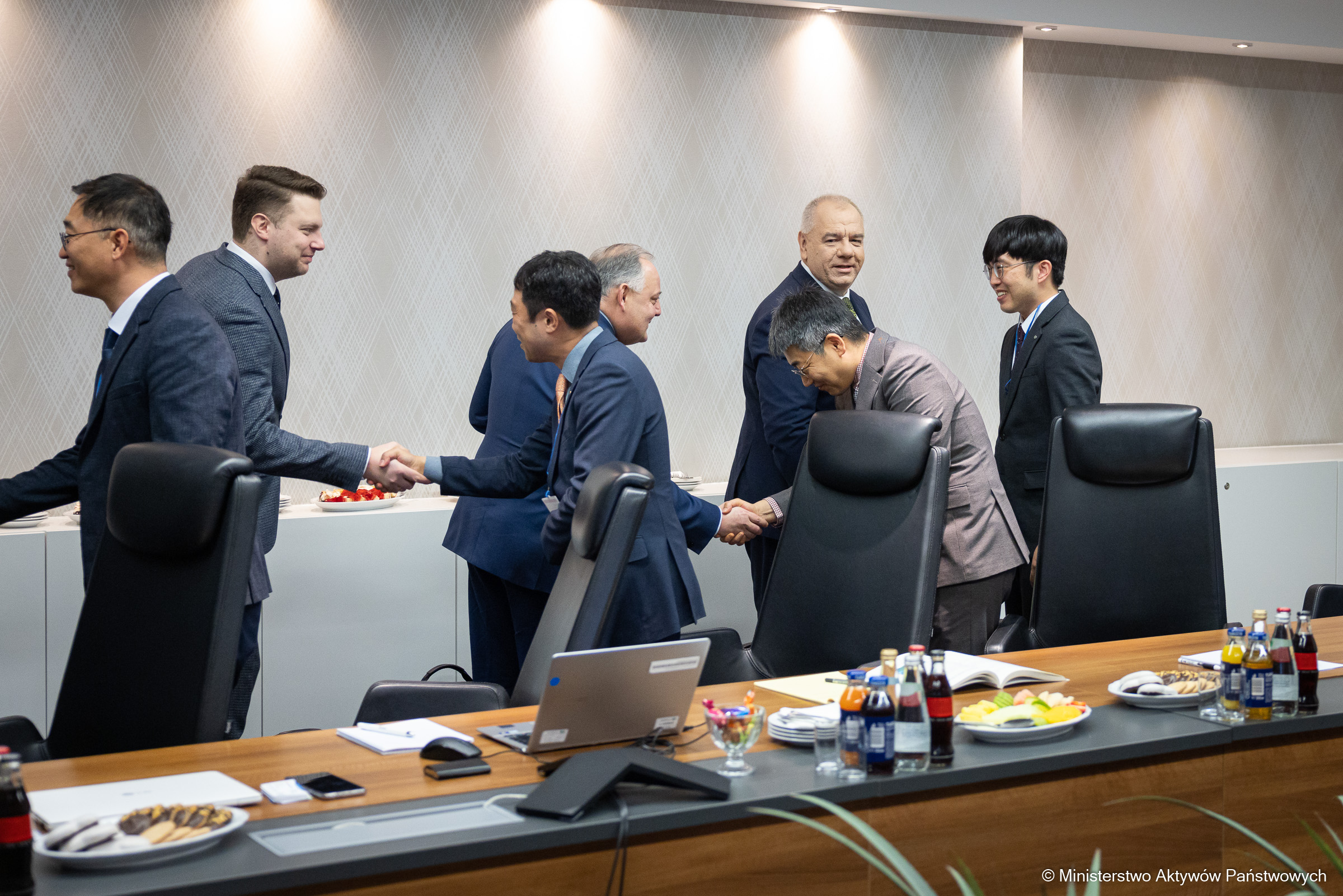Jacek Sasin, wicepremier, minister aktywów państwowych i Wojciech Dąbrowski, prezes zarządu PGE Polskiej Grupy Energetycznej spotkali się z przedstawicielami koreańskiej firmy energetycznej KHNP. Spotkanie dotyczyło budowy elektrowni jądrowej w Pątnowie.