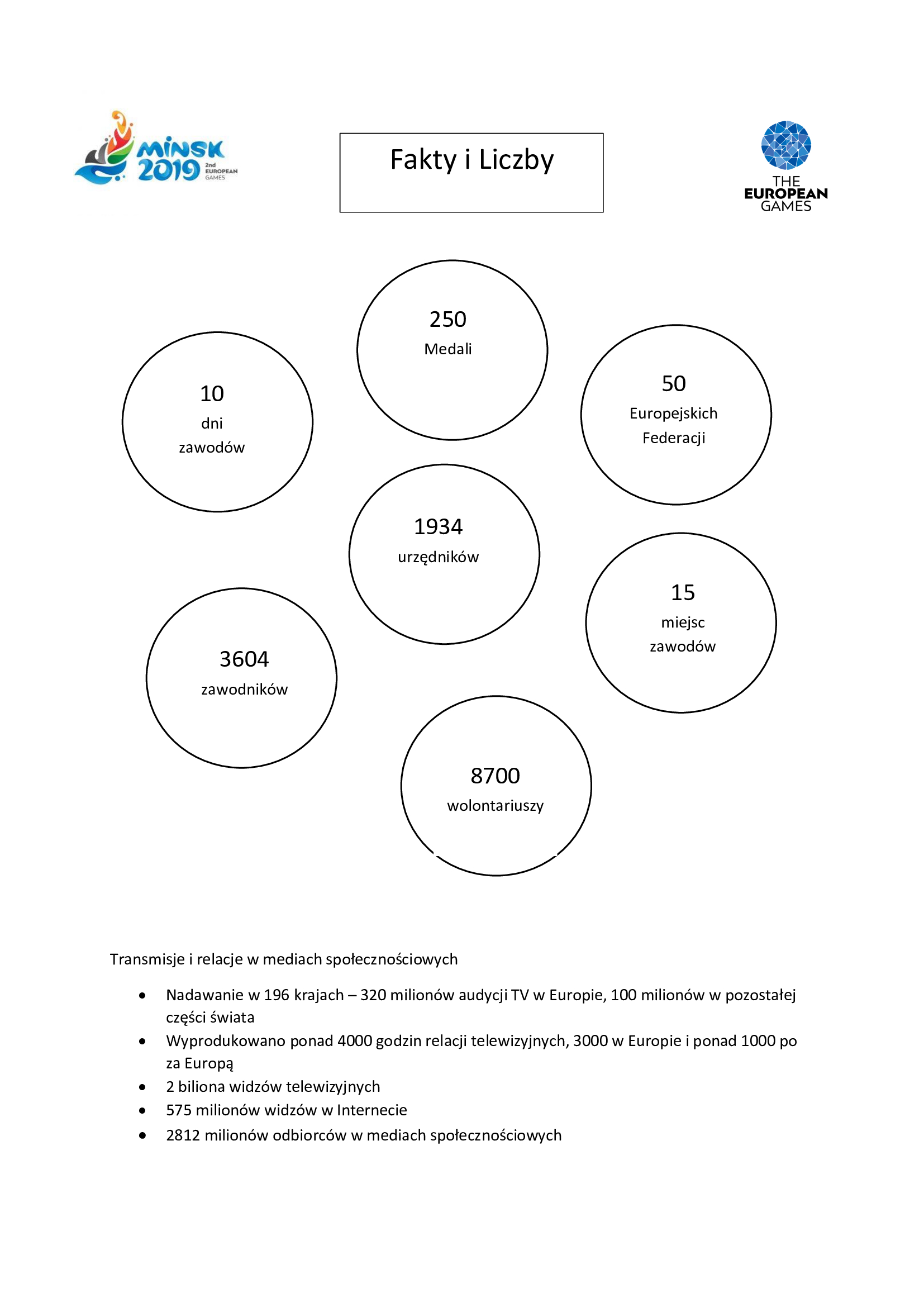 Igrzyska Europejskie 2019 w Mińsku odbyły się w dniach 21-30 czerwca 2019 roku. Wzięło w nich udział około 4 082 zawodników z 50 krajów. Rywalizacja odbyła się w następujących sportach: