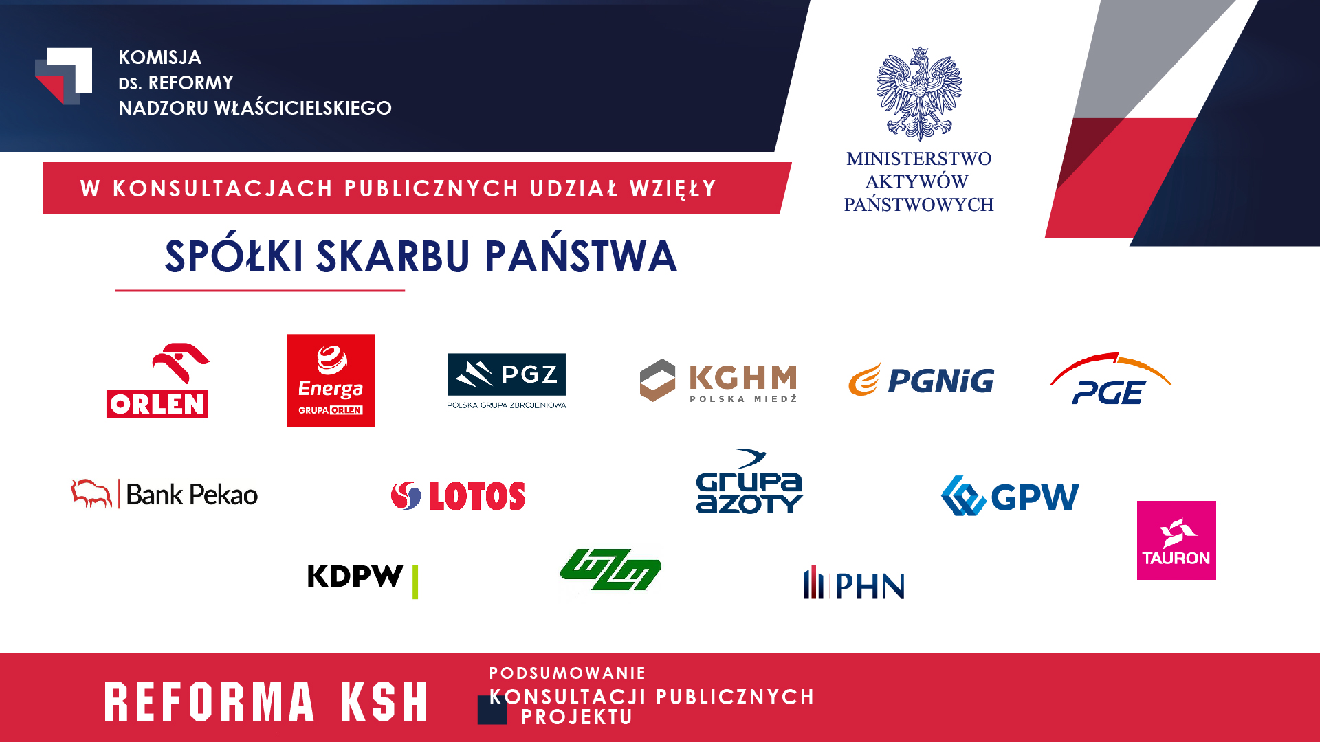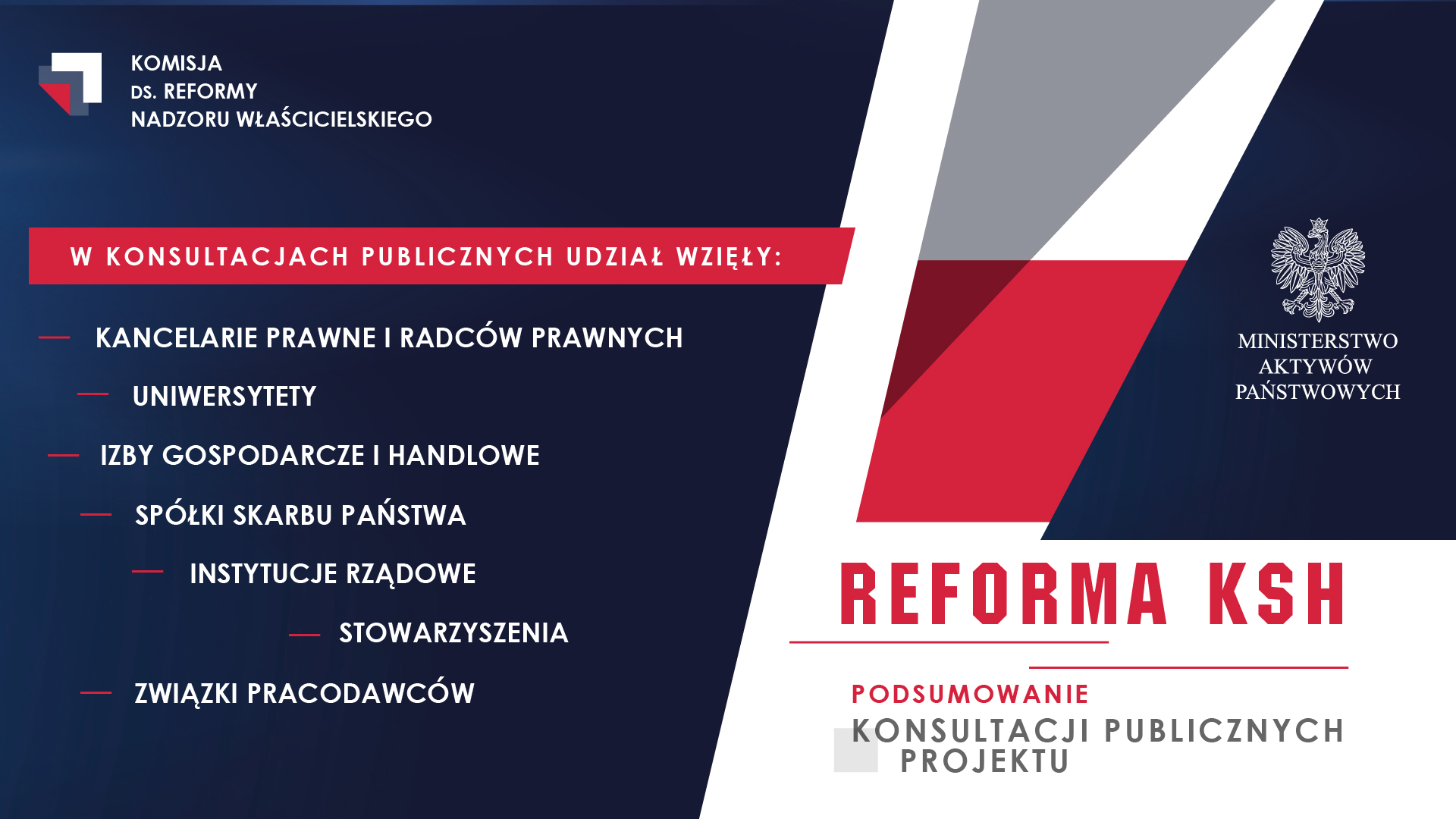 W czwartkowy poranek 29 pździernika 2020 r. odbyło się oficjalne posiedzenie Komisji ds. Reformy Nadzoru Właścicielskiego, podczas którego omówiono zmiany wprowadzone do pierwotnej wersji nowelizacji Kodeks spółek handlowych w wyniku przeprowadzonych wcześniej konsultacji publicznych. Na spotkaniu obecny był Wicepremier, Minister Aktywów Państwowych i Przewodniczący Komisji Jacek Sasin, jak również Sekretarz Stanu, Pełnomocnik Rządu ds. Reformy Nadzoru Właścicielskiego nad Spółkami Skarbu Państwa Janusz Kowalski. Dodatkowo w spotkaniu wzięli udział Przewodniczący poszczególnych zespołów eksperckich wchodzących w skład Komisji oraz przedstawiciele Ministerstwa Aktywów Państwowych. Poprawiony projekt reformy Ksh został przyjęty jednogłośnie i trafił do dalszych prac, przybliżających nas do głosowania nad jego treścią w Sejmie RP.