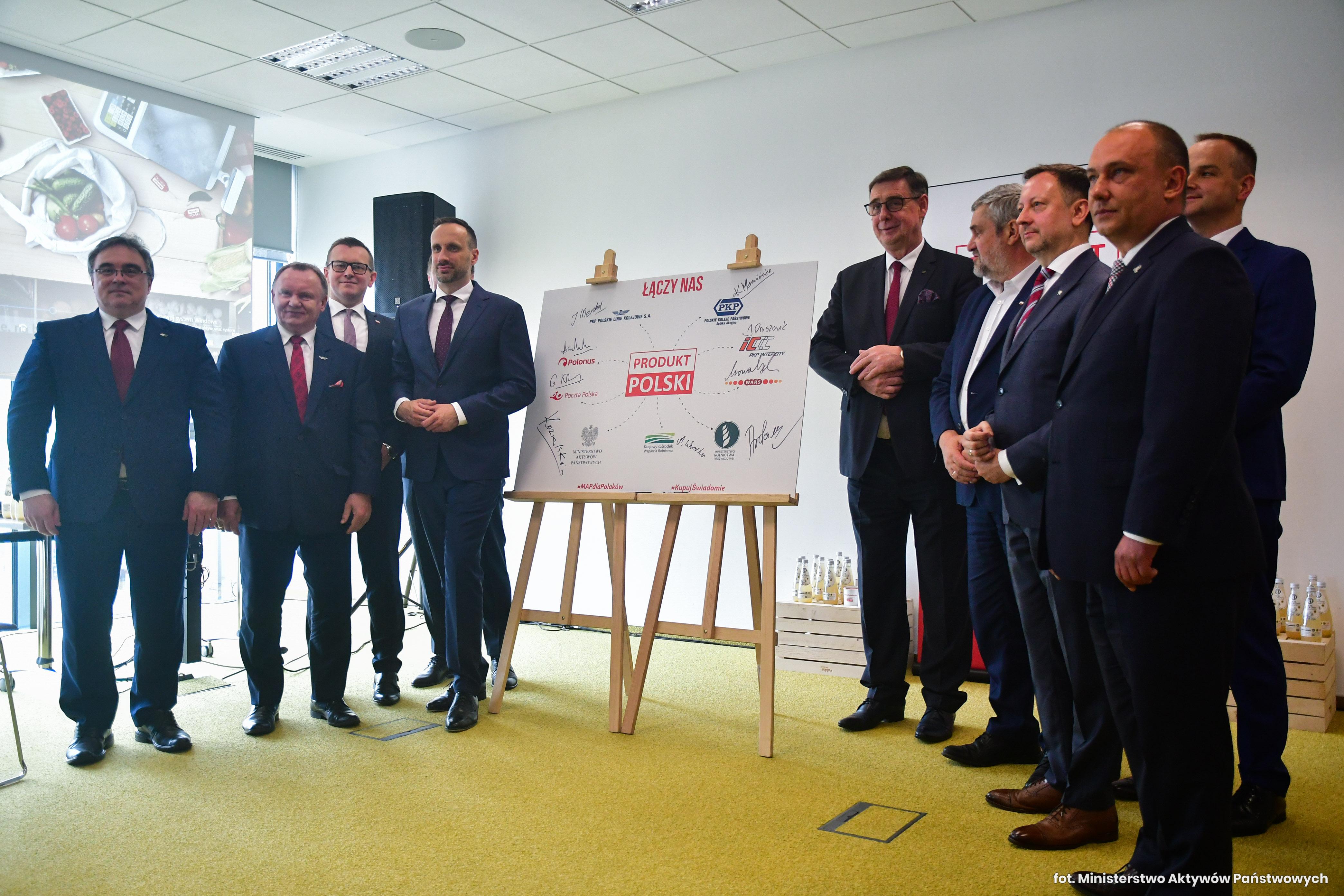 Przedstawiciele spółek nadzorowanych przez MAP podpisali w piątek list intencyjny dotyczący współpracy i wspólnych działań przy promowaniu produktów oznaczonych znakiem towarowym PRODUKT POLSKI. W wydarzeniu uczestniczył Wiceminister Aktywów Państwowych Janusz Kowalski.