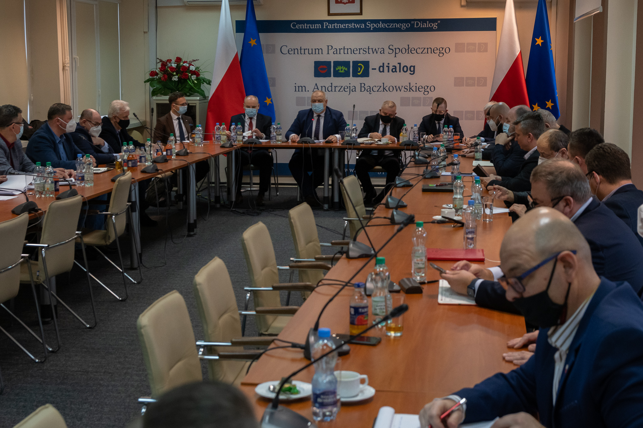 Wicepremier Jacek Sasin spotkał się dziś w Centrum Partnerstwa Społecznego „Dialog” w Warszawie z przedstawicielami strony społecznej, którzy sygnowali Umowę Społeczną dotyczącą transformacji sektora górnictwa węgla kamiennego oraz wybranych procesów transformacji województwa śląskiego.