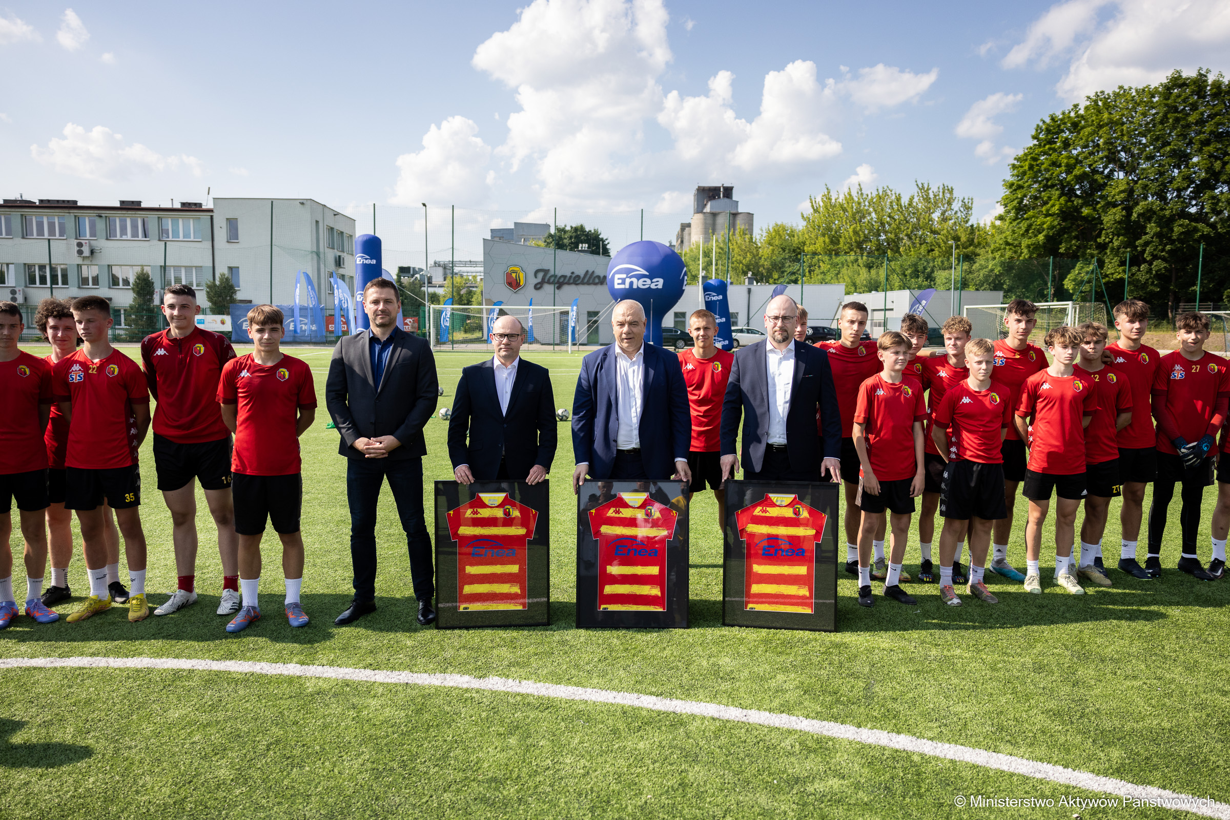 Wicepremier Jacek Sasin uczestniczył także w uroczystym ogłoszeniu współpracy sponsorskiej Enei z Jagiellonią Białystok oraz sponsoringu strategicznego Akademii Jagiellonii Białystok.