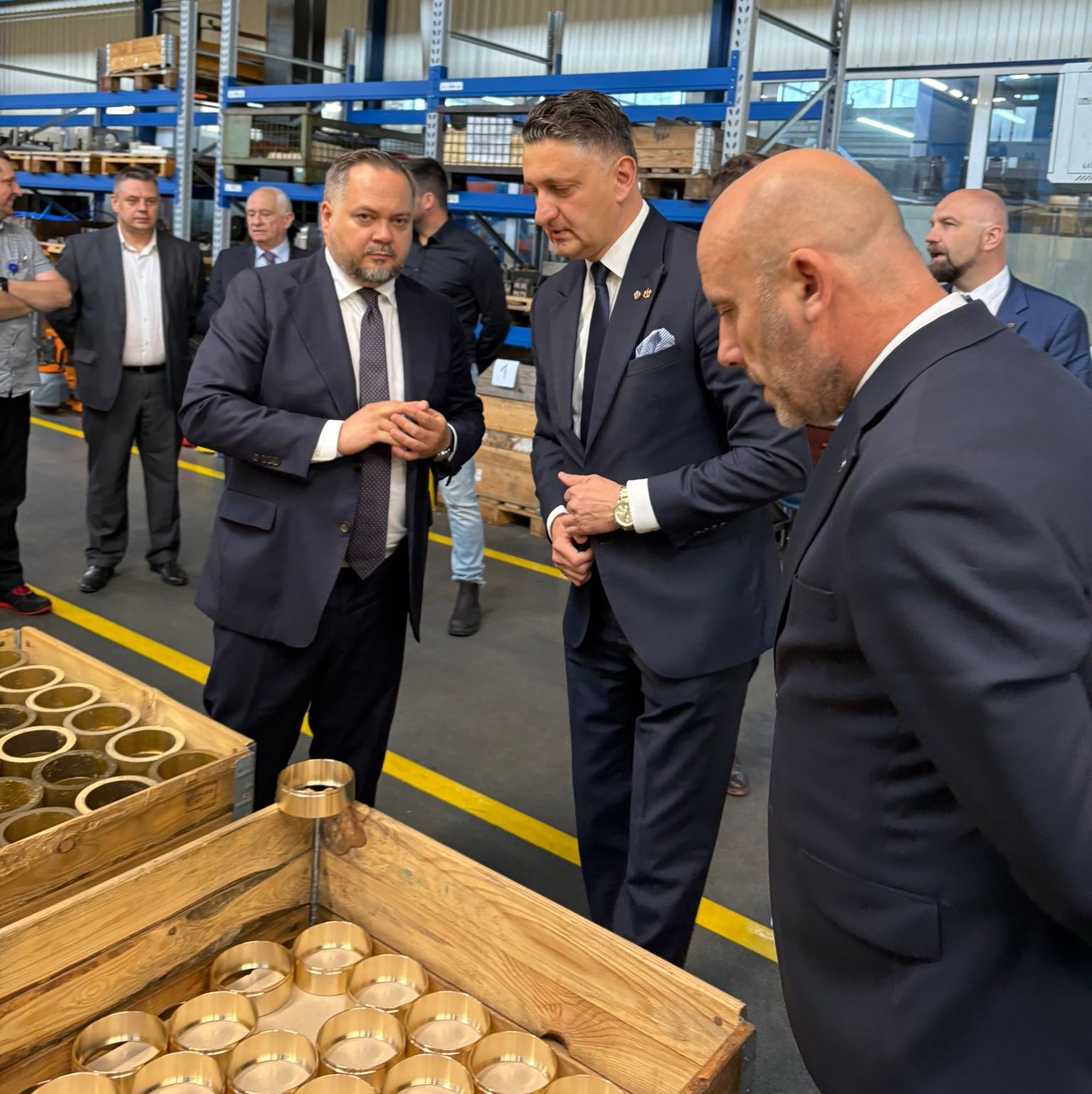 Wiceminister Konrad Gołota odbył także wizytę w bydgoskiej Belmie, jednym z najstarszych zakładów przemysłowych w regionie kujawsko – pomorskim. To przedsiębiorstwo z ponad 150-letnią tradycją, należące do Polskiej Grupy Zbrojeniowej zajmuje się m. in. produkcją nowoczesnych systemów minowych. Wiceszef MAP rozmawiał z zarządem spółki o inwestycjach i planach rozwoju, a także zapoznał się z procesem produkcji w zakładach. W spotkaniu udział wziął również Prezes PGZ, Adam Leszkiewicz.
