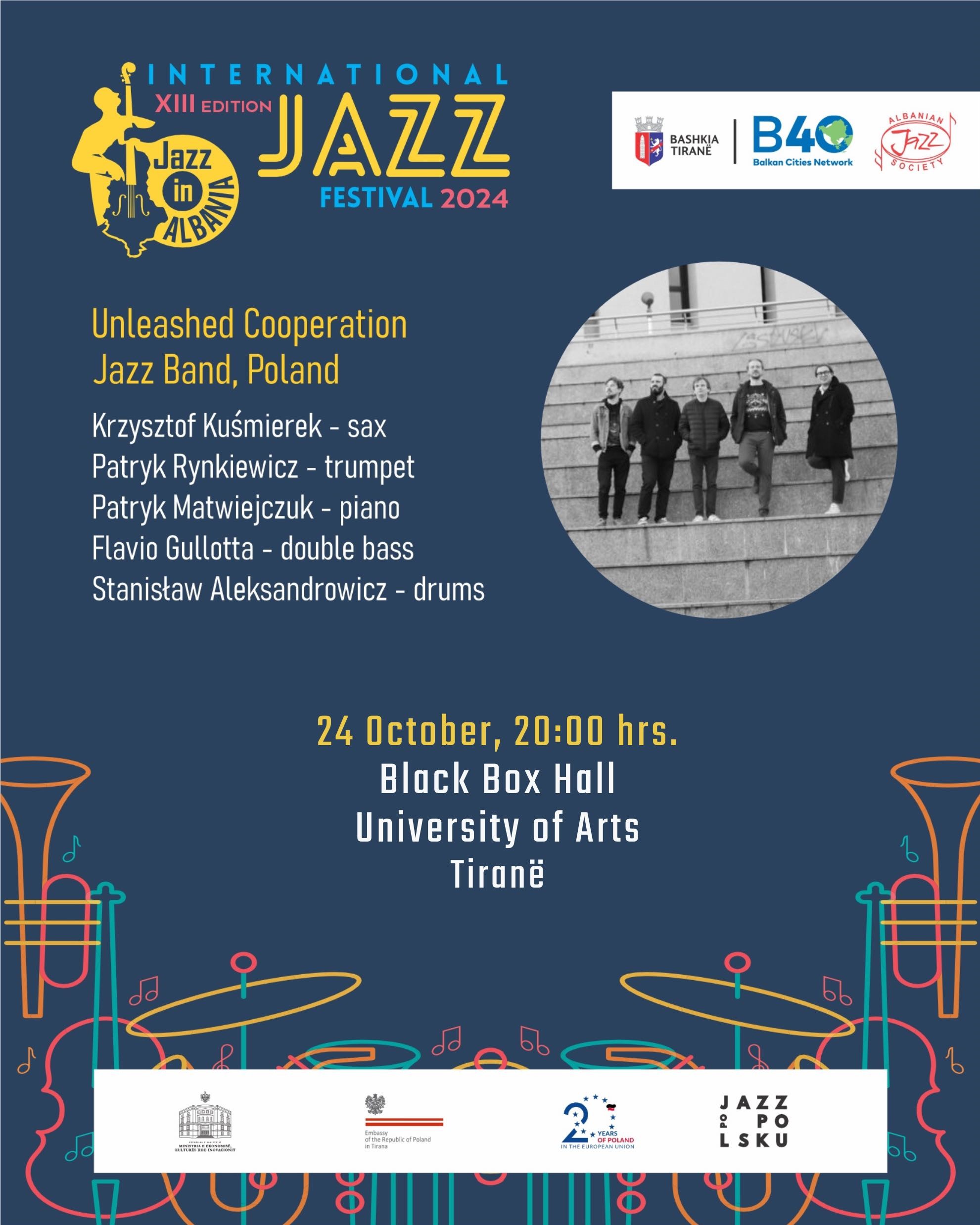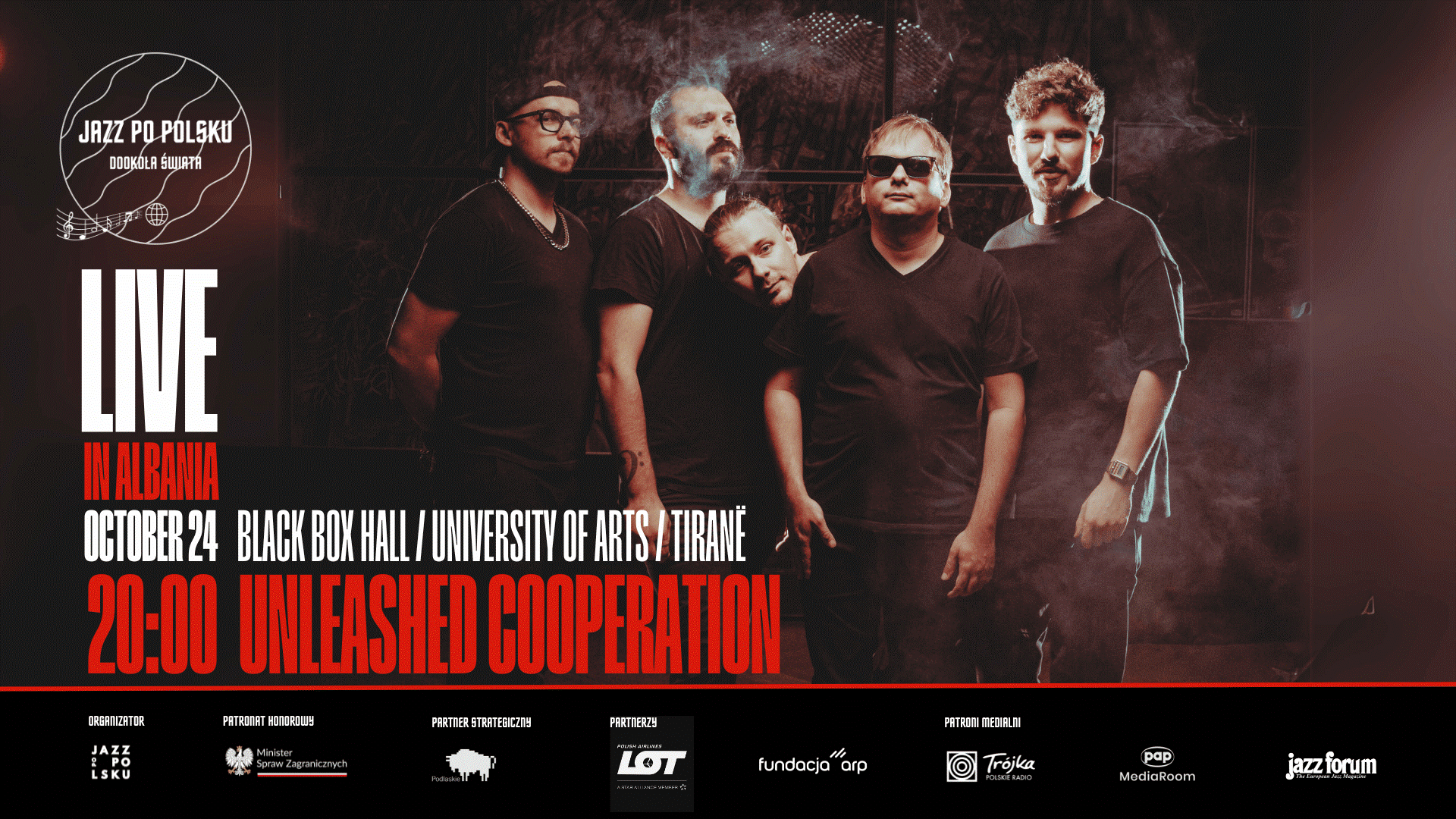 During their concerts in Albania, Unleashed Cooperation will promote their latest album "Trust", which is the next stage of their musical explorations involving improvisation, contemporary music, ethnic music and jazz. The whole, maintained in the convention of acoustic sound, refers to the music known from the recordings of Tomasz Stanko or Krzysztof Komeda. The quintet, as the spiritual heir to the great masters, develops their sound through a number of production procedures, giving the whole a modern and fresh sound.