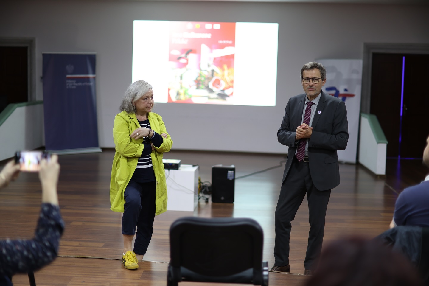 The Polish Cultural Week 2025 began on Monday, April 14, in the public space at the “Cloud” (Reja) installation in the center of Tirana, with a show of traditional Polish dances performed by the Song and Dance Ensemble “Silesianie” of the University of Economics in Katowice . Earlier that day, Polish dancers rehearsed with an Albanian folk dance ensemble (Ansambli i Këngëve e Valleve Popullore) and performed several dances together at the inaugural performance, including the "Polonaise", inviting the audience to dance as well. Thanks to the location of the event in a very popular public place, the performance attracted not only invited guests, but also many residents of Tirana and tourists. On the occasion of the Polish Week, the main artery of the city, connecting Skanderbeg Square with Mother Teresa Square, was decorated with Polish flags. The dance show was continued the next day with workshops for students of the Dance Department of the University of Arts, who learned to dance the "Trojak" and the "Polonaise" under the supervision of Polish dancers and a choreographer. The workshops were also very well received by students and teaching staff of the University of Arts.