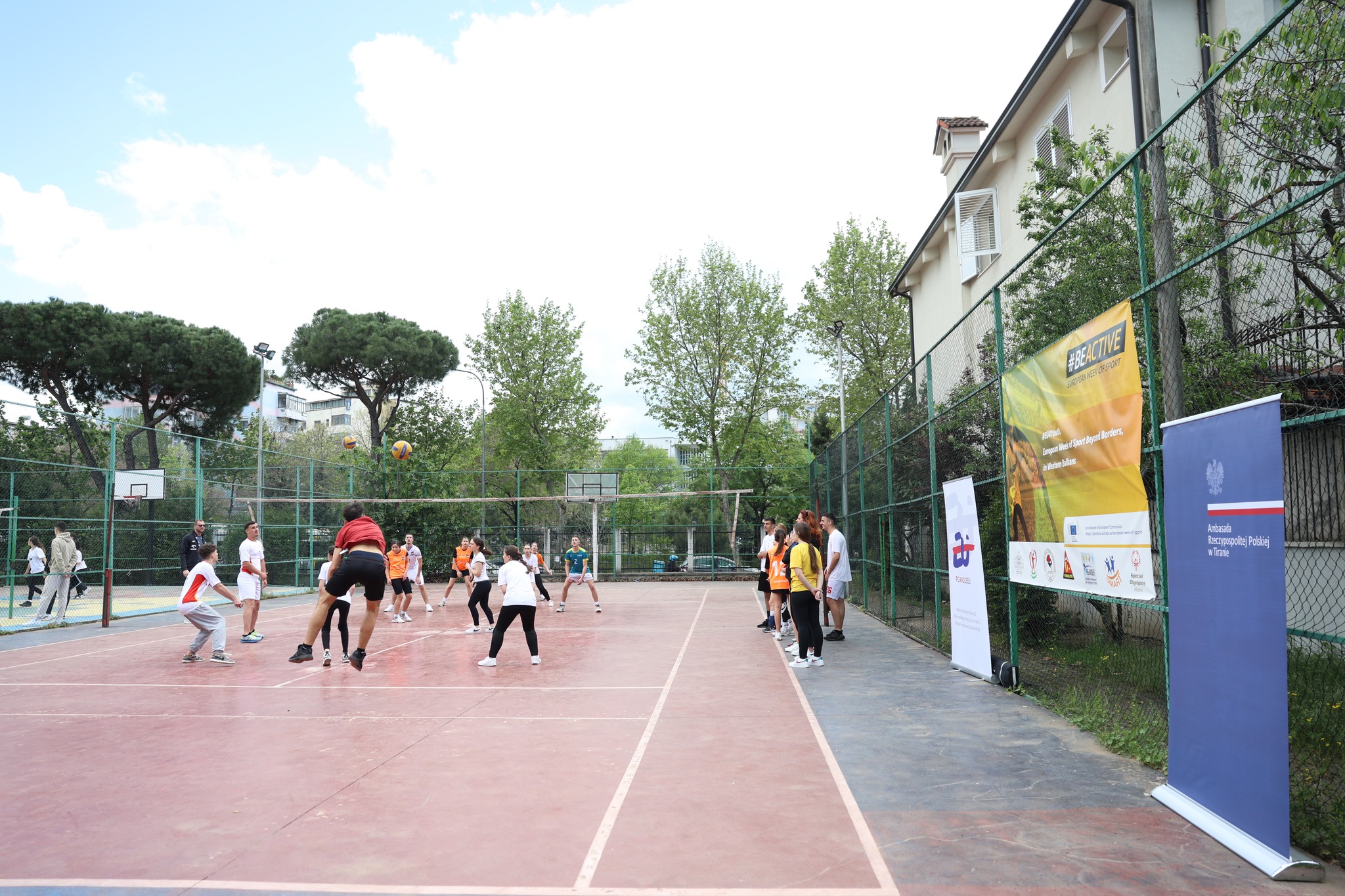 On April 17 and 18, two professional coaches from the Polish Volleyball Association, Szymon Szlendak and Dawid Krupa, led training sessions with a group of Albanian youth from the Ismail Qemali High School. During the training sessions, teams were selected to play the final match with teams trained by the Albanian Volleyball Association. The match took place in the sports hall at the Vasil Shanto Primary School. The Head of Mission, Wojciech Unolt, together with the Secretary General of the Albanian Volleyball Association, Ervis Dosti, presented cups to the winning teams and certificates of participation to all the young athletes.