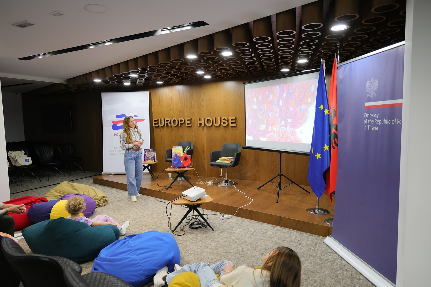 Also on April 14, the award-winning Polish author and illustrator of children's books Monika Filipina led art workshops for children at the Puppet Theatre. Monika Filipina has written and illustrated over 50 books published worldwide in over 20 languages. On April 16, the author met with children, parents and representatives of Albanian publishing houses at Europe House to present a selection of her works. Each participant of the meeting received a book by Ms. Monika and a package of gifts from the embassy.