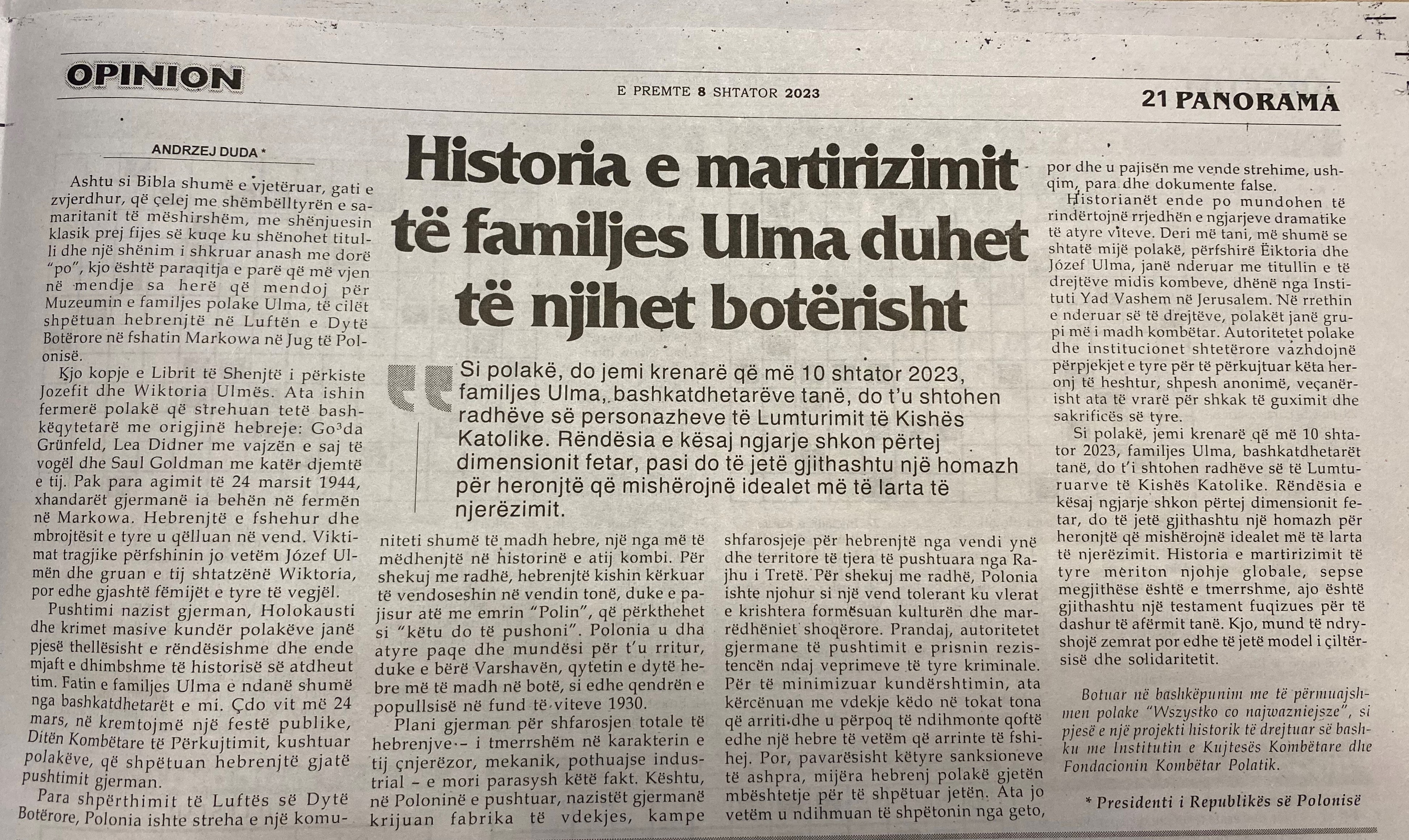 The article of the President of the Republic of Poland - Andrzej Duda was also published in the Albanian media: