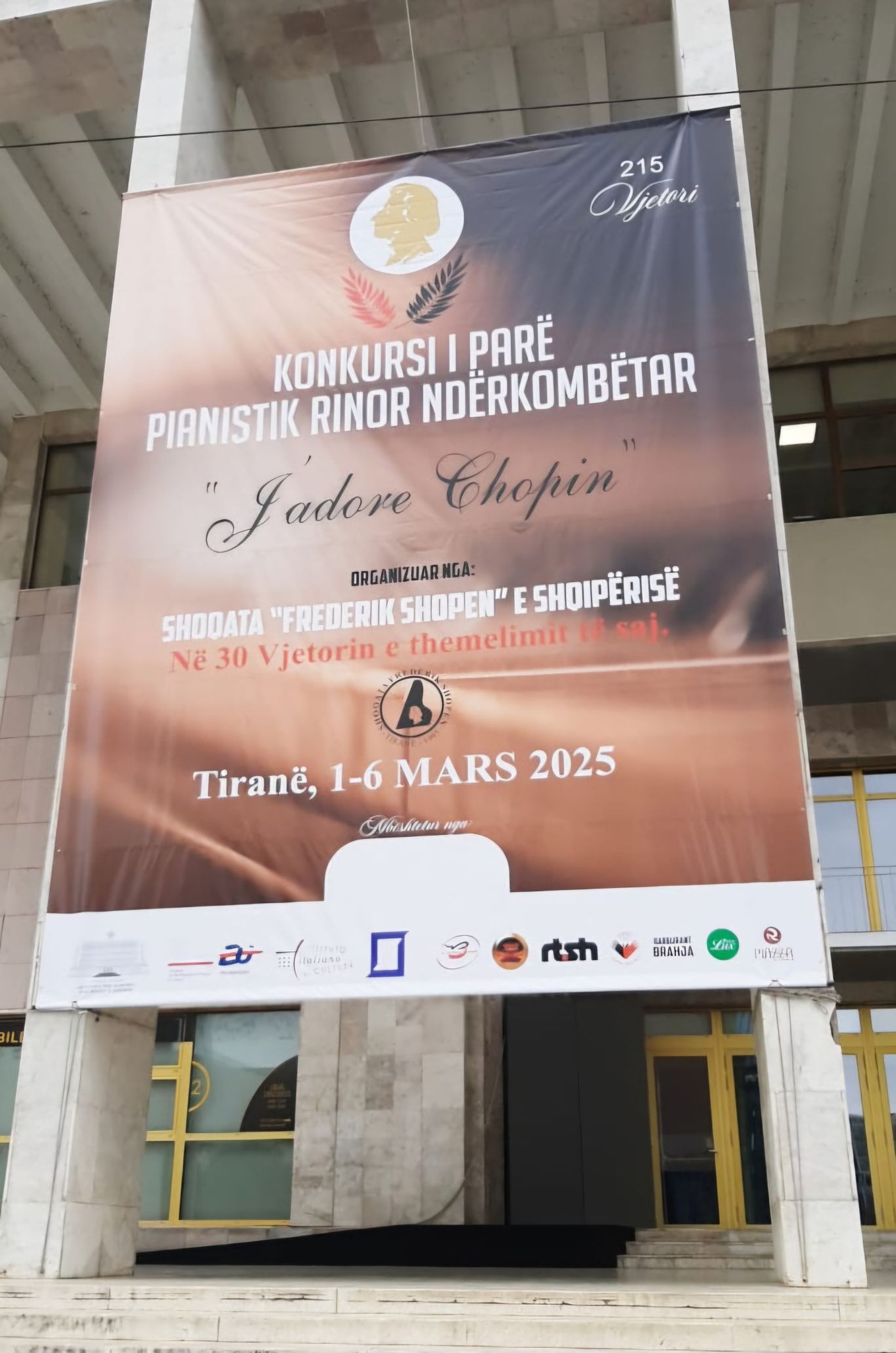 Z okazji 215. rocznicy urodzin kompozytora i pianisty wirtuoza Fryderyka Chopina oraz 30. rocznicy powstania Albańskiego Towarzystwa Chopinowskiego, w dniach 1-6 marca w Narodowym Teatrze Opery i Baletu w Tiranie odbędzie się pierwszy Międzynarodowy Konkurs Młodych Pianistów "J'adore Chopin", organizowany przez Albańskie Towarzystwo Chopinowskie.