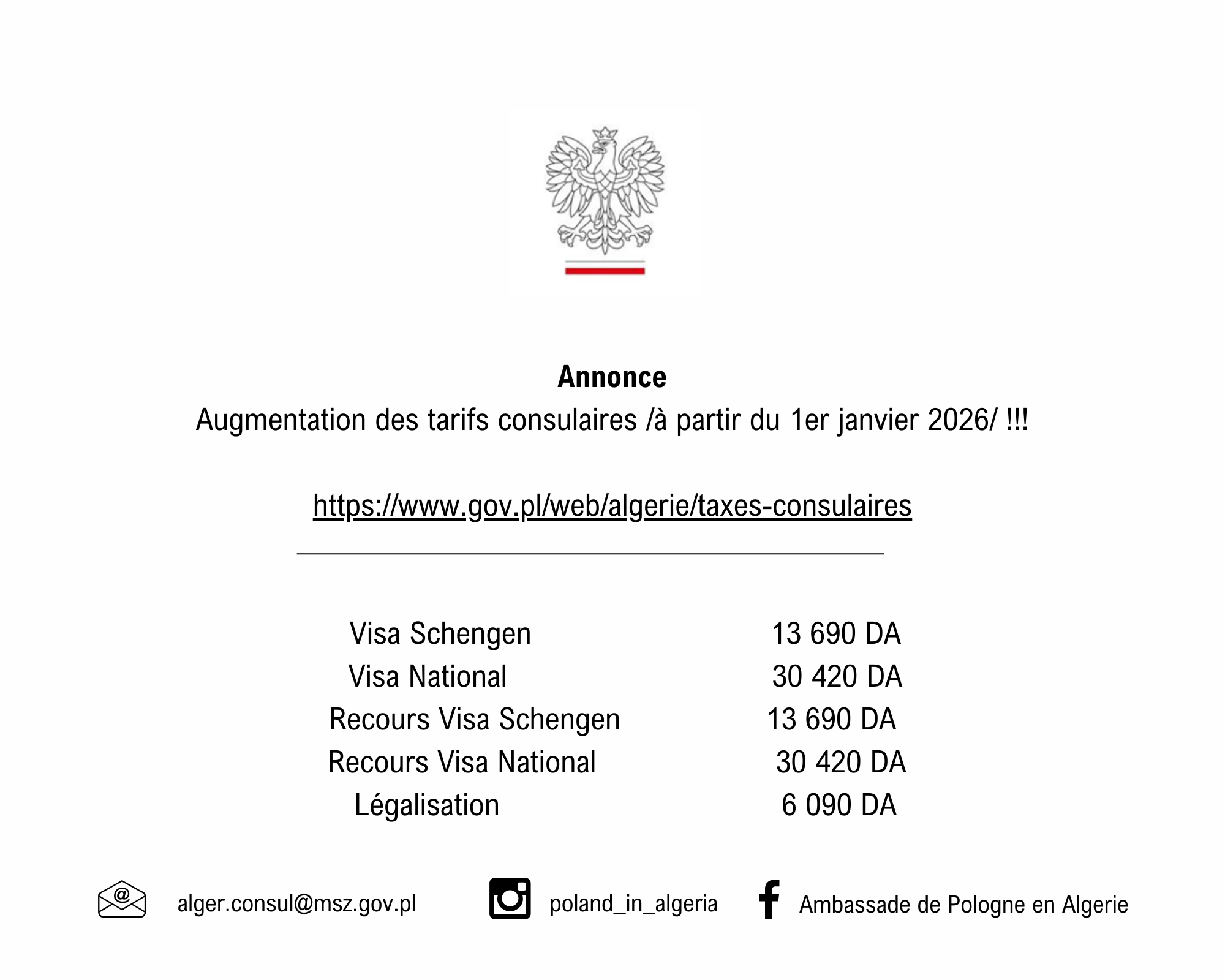 Tarifs consulaires a partir 01.01.2026