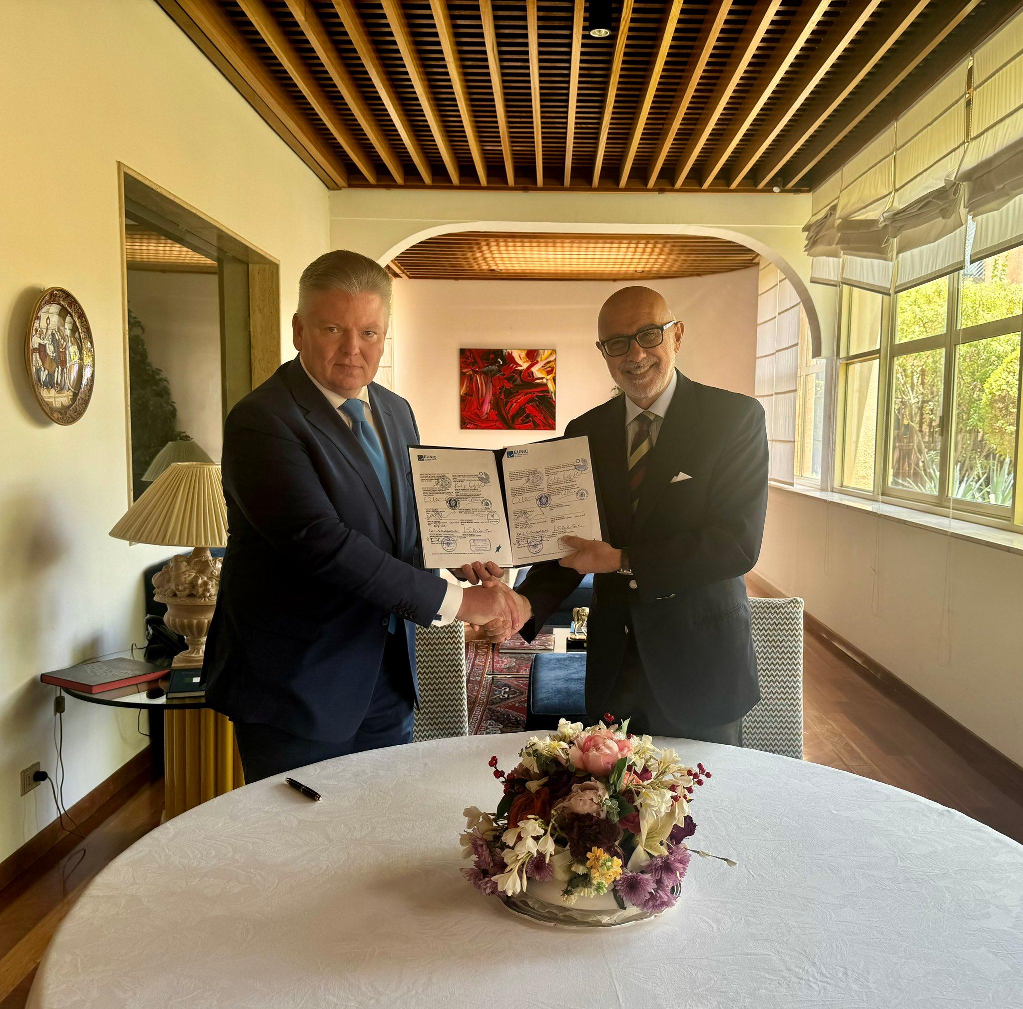 25 lipca 2024 r. Ambasador RP Robert Rostek uroczyście podpisał statut lokalnego klastra European Institutes for Culture (EUNIC) przy obecności Ambasadora Włoch Roberto Cantone, który obecnie sprawuje prezydencję w organizacji.