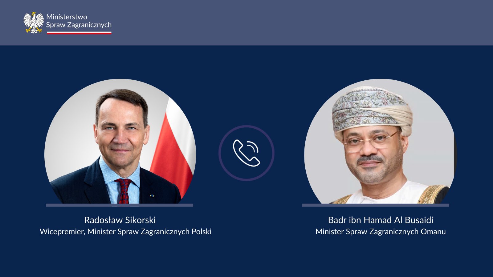 Wiceprezes Rady Ministrów, minister spraw zagranicznych RP Radosław Sikorski odbył rozmowę telefoniczną z ministrem spraw zagranicznych Sułtanatu Omanu Sayyidem Badrem bin Hamadem Al-Busaidim.