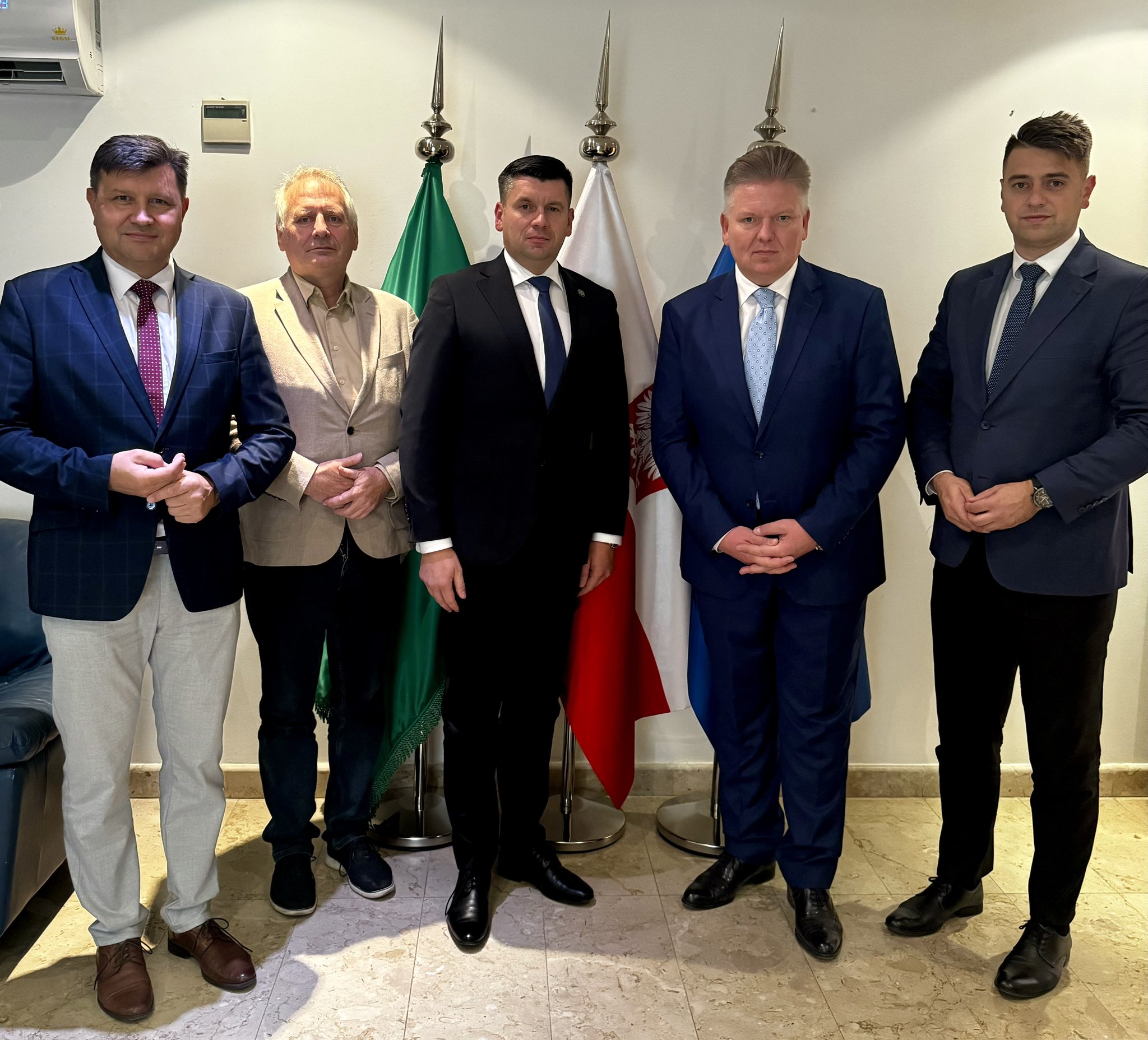 8 października 2024 r. Ambasador Robert Rostek spotkał się z delegacją województwa małopolskiego, na czele z Marszałkiem Województwa Łukaszem Smółką oraz Prezesem Małopolskiej Organizacji Turystycznej Grzegorzem Biedroniem, z którymi rozmawiał na temat perspektyw współpracy z Arabią Saudyjską oraz Omanem.