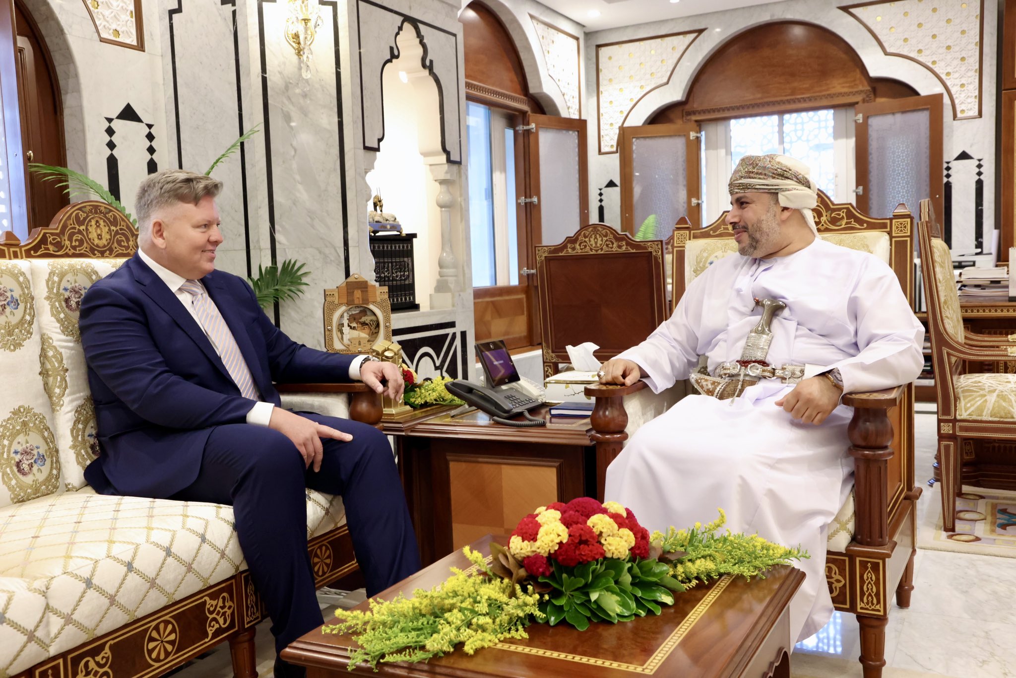 W dniach 24 - 27 września br. Ambasador RP Robert Rostek złożył wizytę w omańskiej prowincji Dhofar, gdzie spotkał się z gubernatorem prowincji Jego Wysokością Sayyidem Marwanem Turki Al Said. W ramach wizyty odbyły się także spotkania z przewodniczącym Izby Handlu i Przemysłu Naifem Hamidem Amerem Fadhilem, z CEO Salalah Free Zone Alim M. Taboukiem, a także z przedstawicielami Salalah Port, Raysut Industrial City oraz Philex Pharmaceuticals.