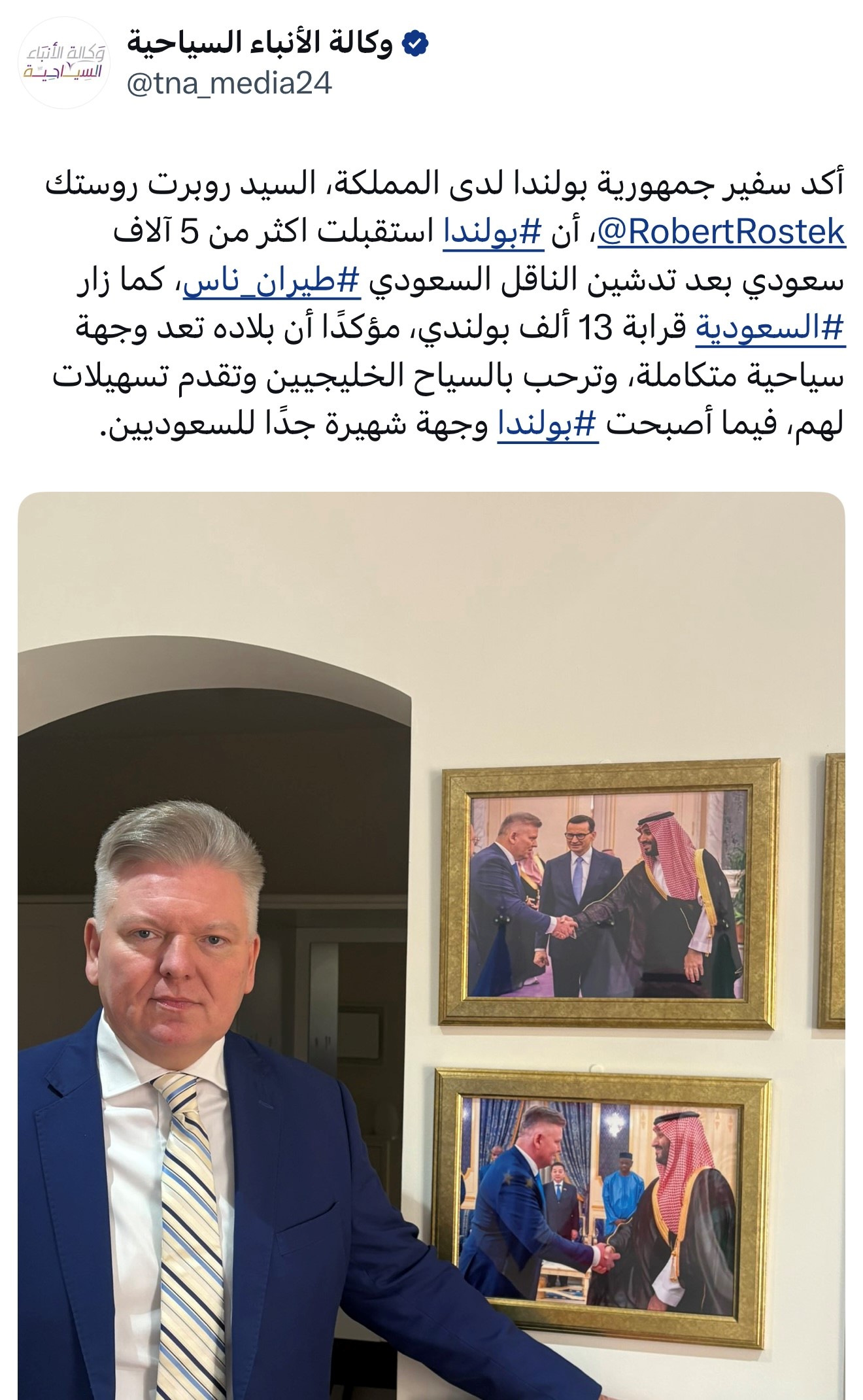 W związku z dynamicznym ruchem turystycznym pomiędzy Polską a Królestwem Arabii Saudyjskiej, czemu sprzyja otwarcie bezpośrednich połączeń lotniczych PLL LOT z Warszawy do Rijadu (od 4 czerwca 2024 r.) oraz linii Flynas z Rijadu do Krakowa (od 27 czerwca 2025 r.) Ambasador Robert Rostek udzielił wywiadu dla Travel News Agency (TNA_media24).
