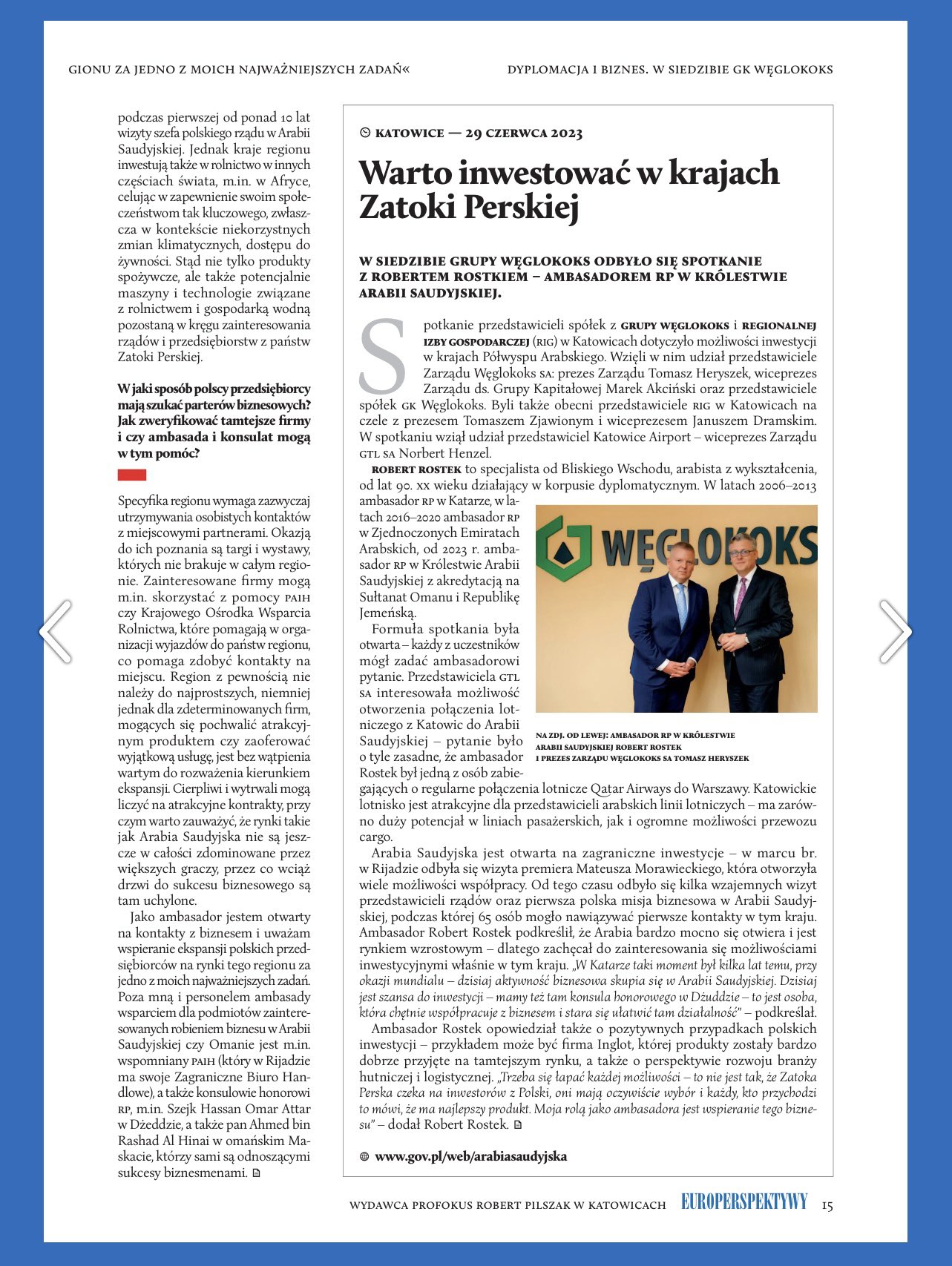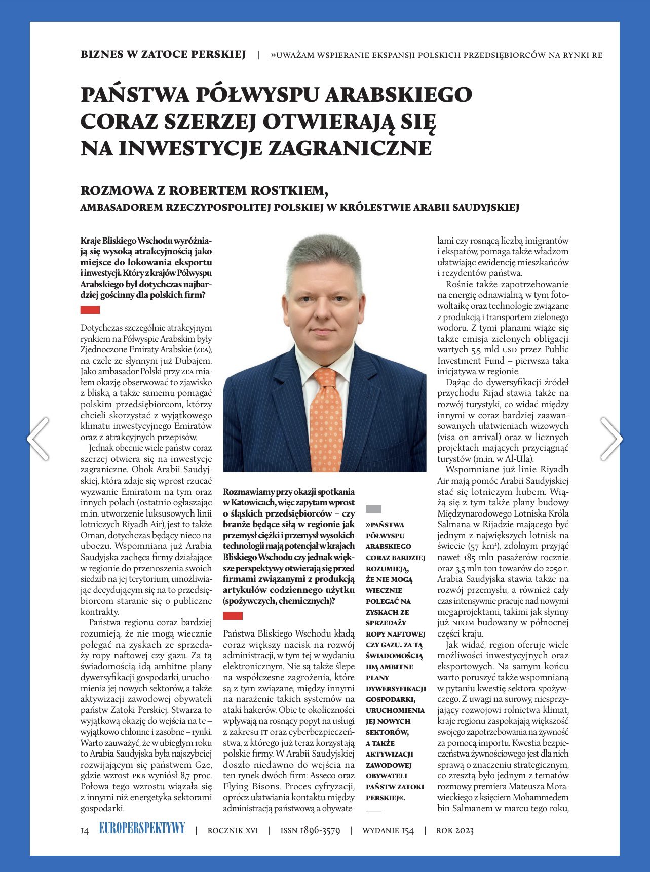 W najnowszym (154) numerze miesięcznika "Europerspektywy" ukazał się wywiad z ambasadorem RP w Królestwie Arabii Saudyjskiej, Robertem Rostkiem. Poniżej znajduje się link do wspomnianej publikacji.