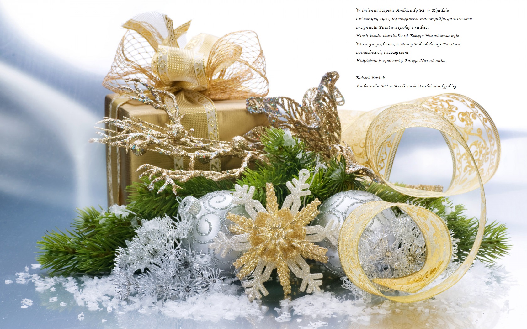 Ambasador RP Robert Rostek wraz z całym zespołem Ambasady życzą Państwu Wesołych Świąt Bożego Narodzenia i Szczęśliwego Nowego Roku 2024!