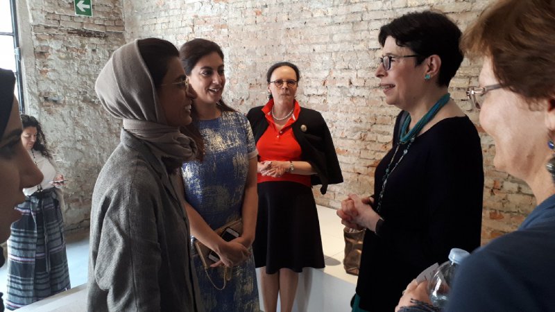 Spotkanie Wiceminister Kultury Wandy Zwinogrodzkiej z Minister Kultury i Rozwoju Wiedzy ZEA Nurą bint Muhammad al-Kabi. Wiceminister Wanda Zwinogrodzka odwiedziła pawilon ZEA podczas wizyty w Wenecji z okazji 16. Międzynarodowej Wystawie Architektury – La Biennale di Venezia, fot. MKiDN