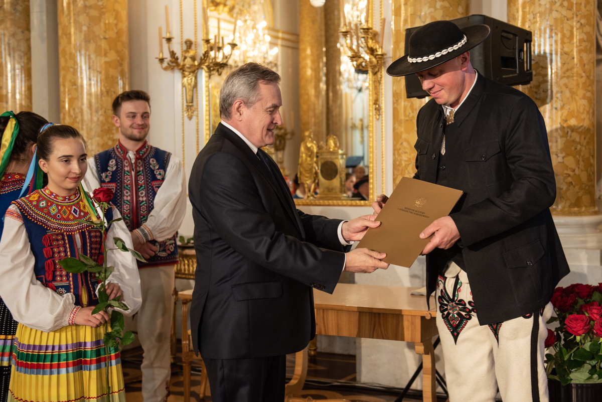 Podczas uroczystości na Zamku Królewskim po raz piąty wręczony został dyplom dla Ambasadora Kultury Tradycyjnej przyznawany przedstawicielowi samorządu, który w ostatnim roku w szczególny sposób troszczył się o rozwój kultury tradycyjnej w swoim regionie. Trafił on w ręce Mateusza Nędzy-Kubińca, samorządowca, radnego Gminy Kościelisko i sołtysa wsi Kościelisko. Mateusz Nędza-Kubiniec jest działaczem i animatorem kultury regionalnej, szczególnie zaangażowanym w działania związane z popularyzacją twórczości poety Stanisława Nędzy- Kubińca. Przywrócił m.in. świetność zabytkowemu obiektowi architektury podhalańskiej – domu dziadka, gdzie prowadzi Izbę Regionalną. Na co dzień wspiera i promuje działalność miejscowych zespołów regionalnych oraz twórców ludowych z terenu Powiatu Tatrzańskiego.